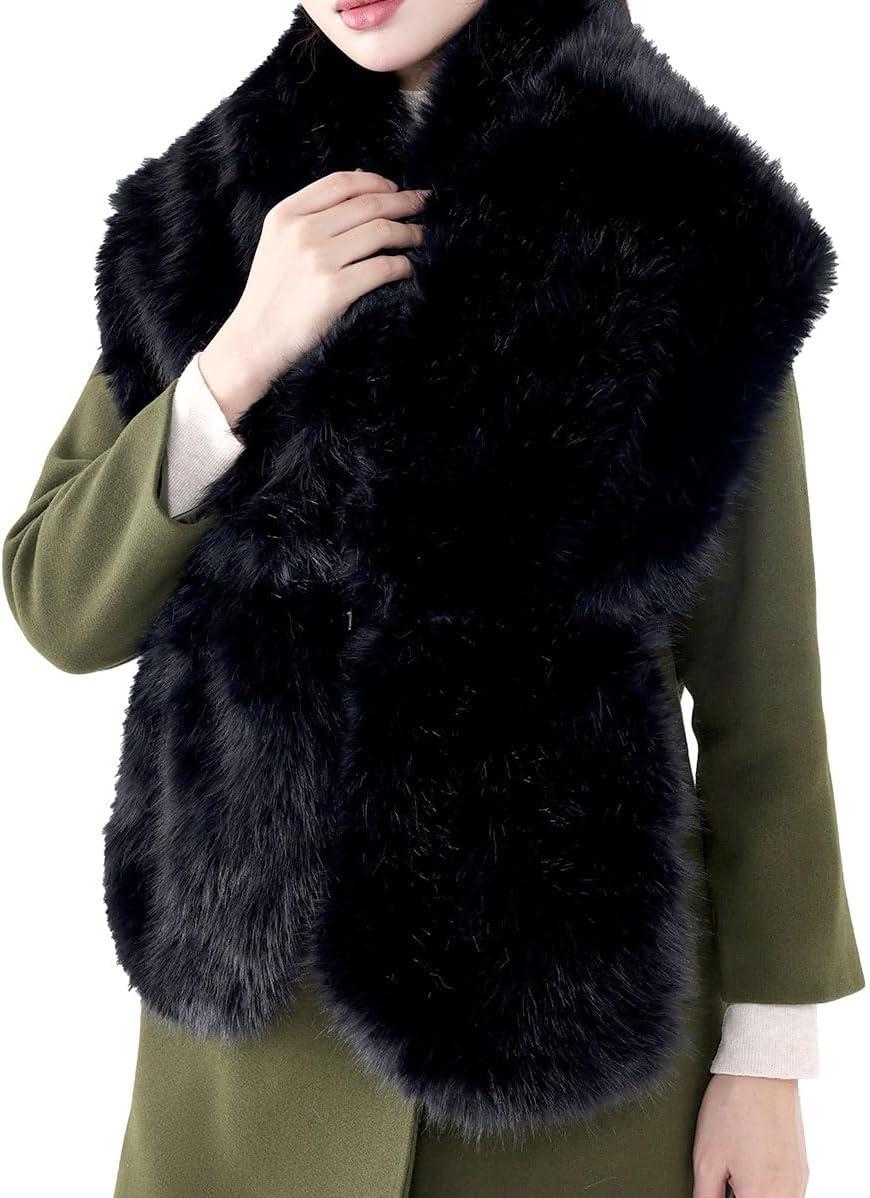 Fur Collar Scarf for Women Faux Fur Scarves Neck Shrug for Fall Winter Coat Dress(Lugo Collection 5 – Black)