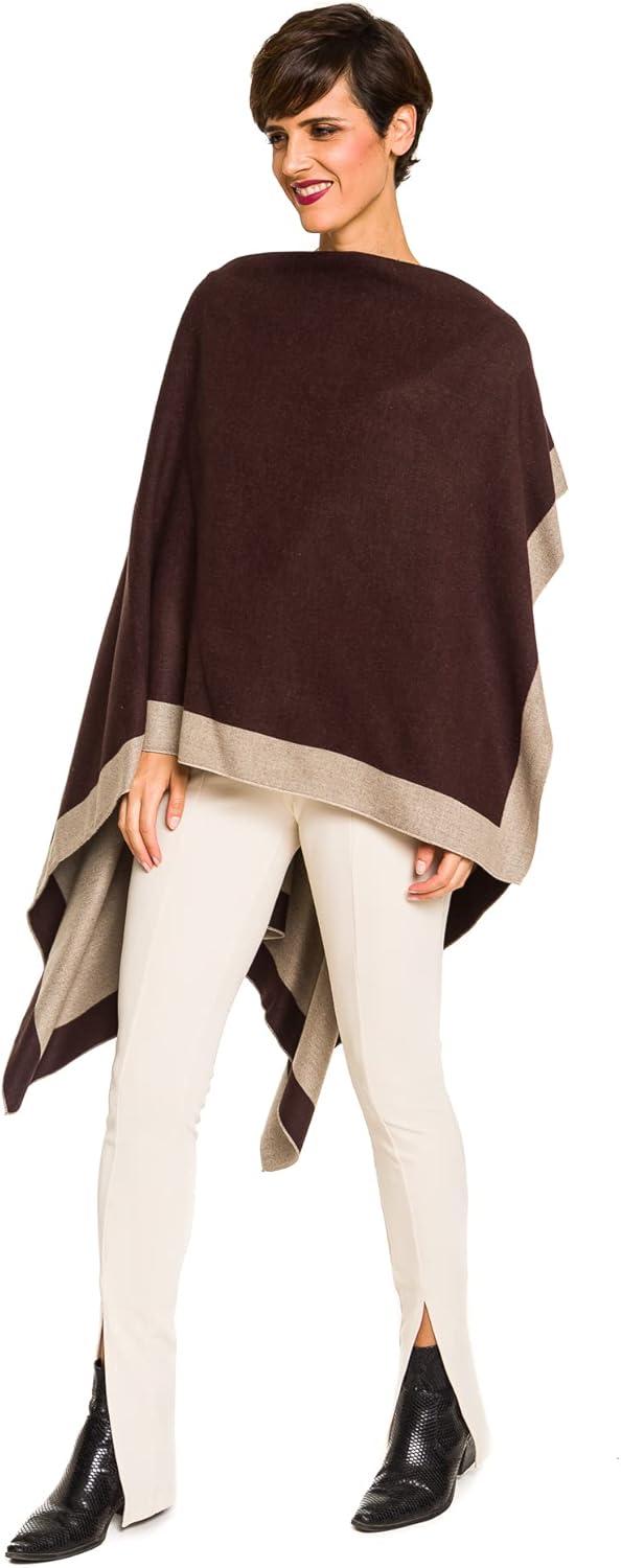Women’s Shawl Wrap Poncho Ruana Cape Cardigan Sweater Open Front for Fall Winter(Border Design – Brown and Beige)