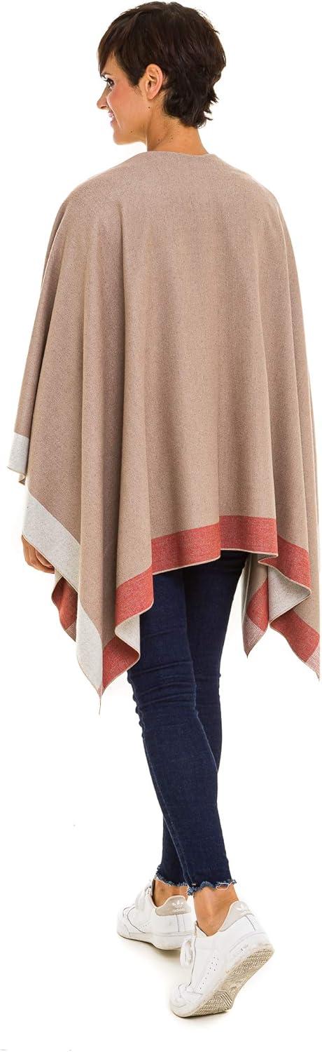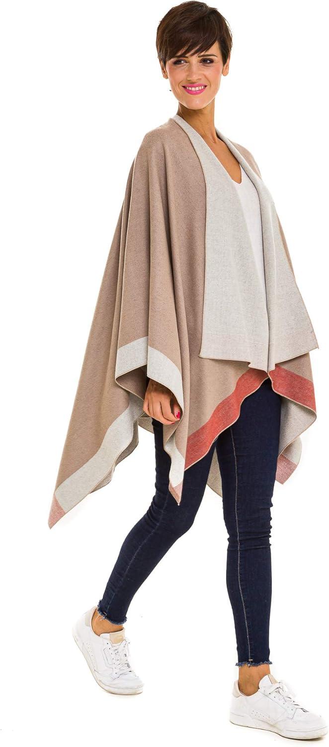Women’s Shawl Wrap Poncho Ruana Cape Cardigan Sweater Open Front for Fall Winter(Border Color Designs – Beige and Gray)
