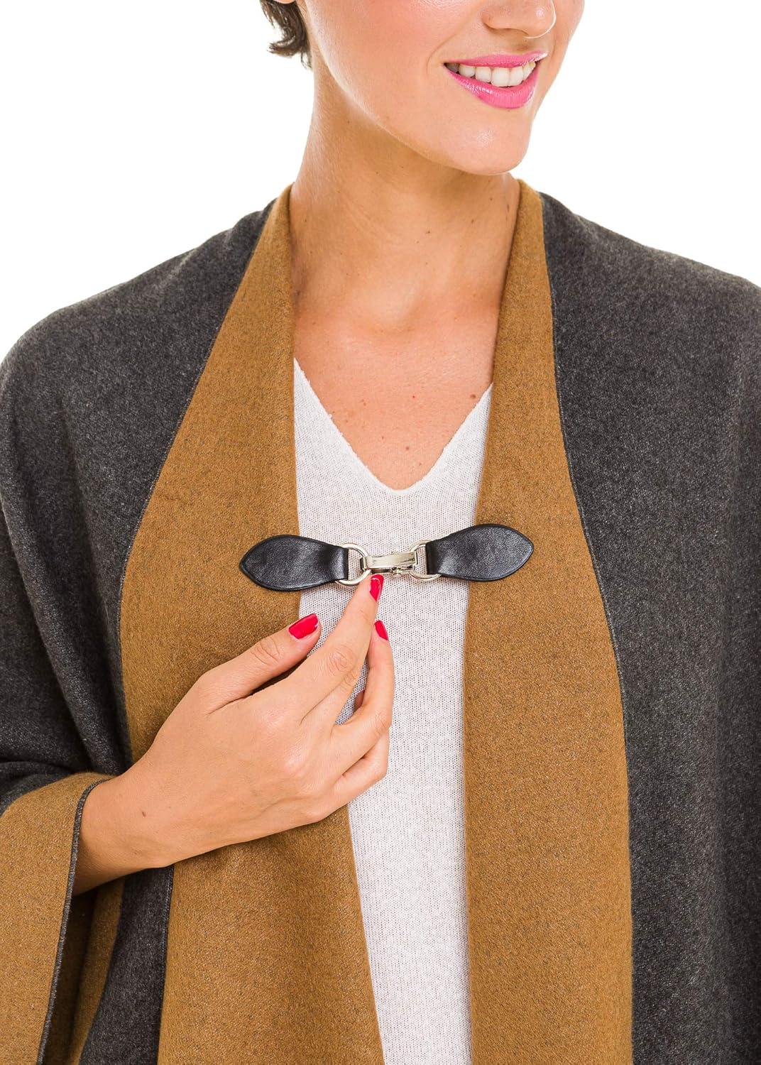 Clip Holder Buckle Clasp Pin for Poncho Cape Cardigan Wrap Shawl Accessories(Black with Silver Clamps)