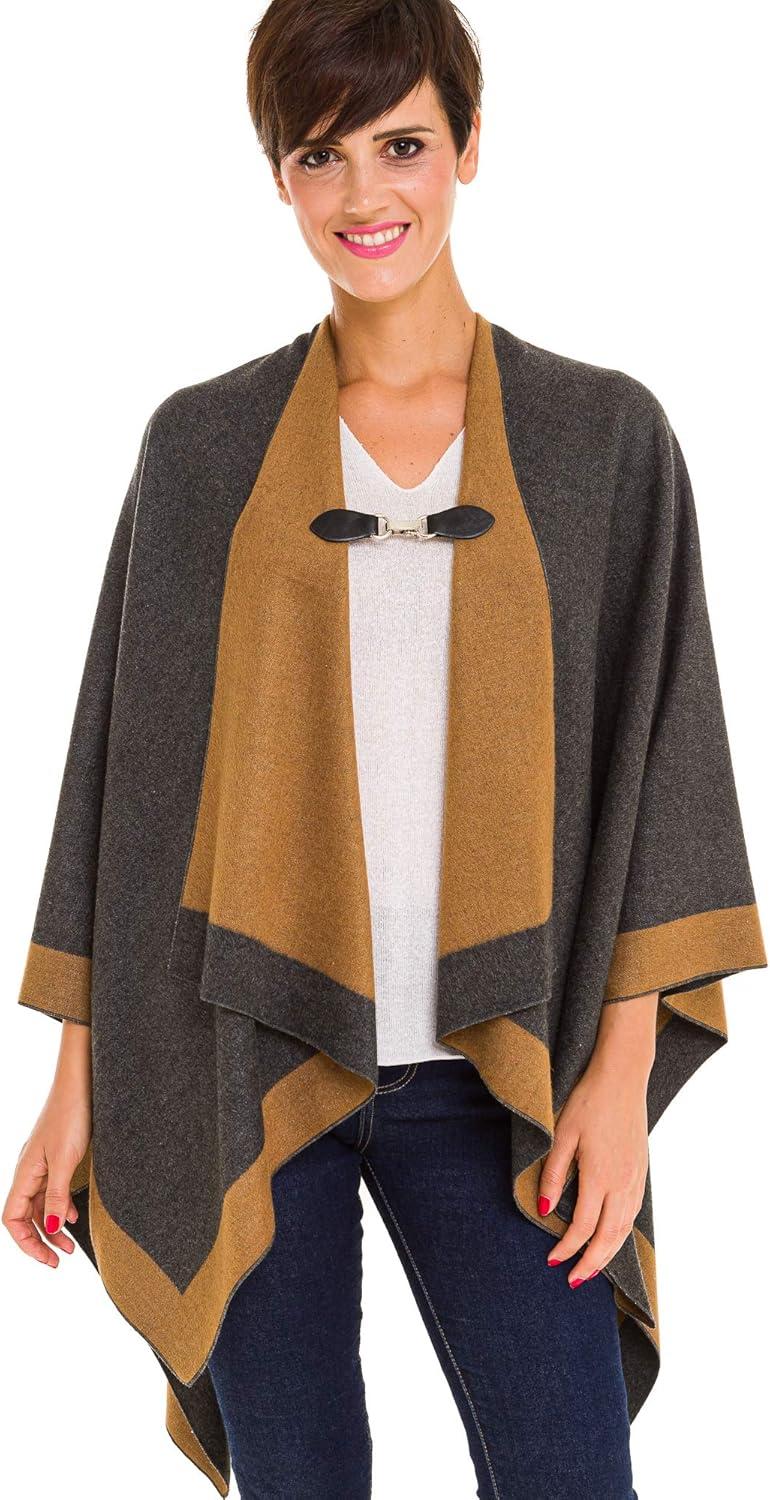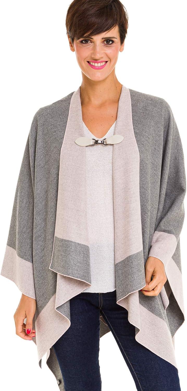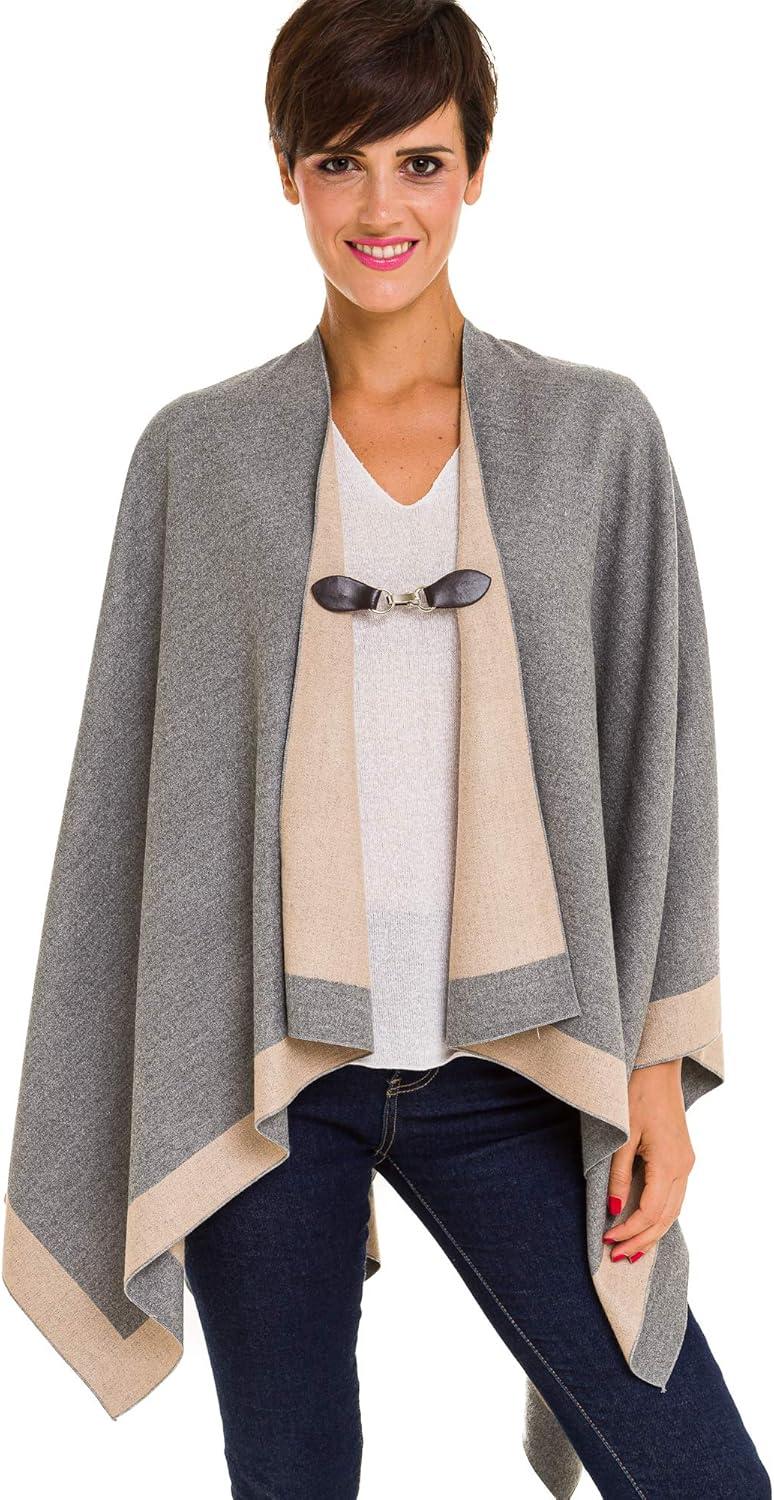 Cardigan Poncho Cape: Women Elegant Cardigan Shawl Wrap Sweater Coat for Fall Winter(Border Design -Double Gray)