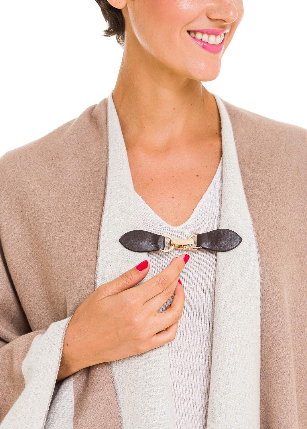Clip Holder Buckle Clasp Pin for Poncho Cape Cardigan Wrap Shawl Accessories(Brown with Silver Clamps)