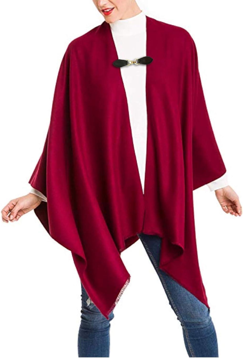 Cardigan Poncho Cape: Women Elegant Cardigan Shawl Wrap Sweater Coat for Fall Winter(Solid Design – Gray)