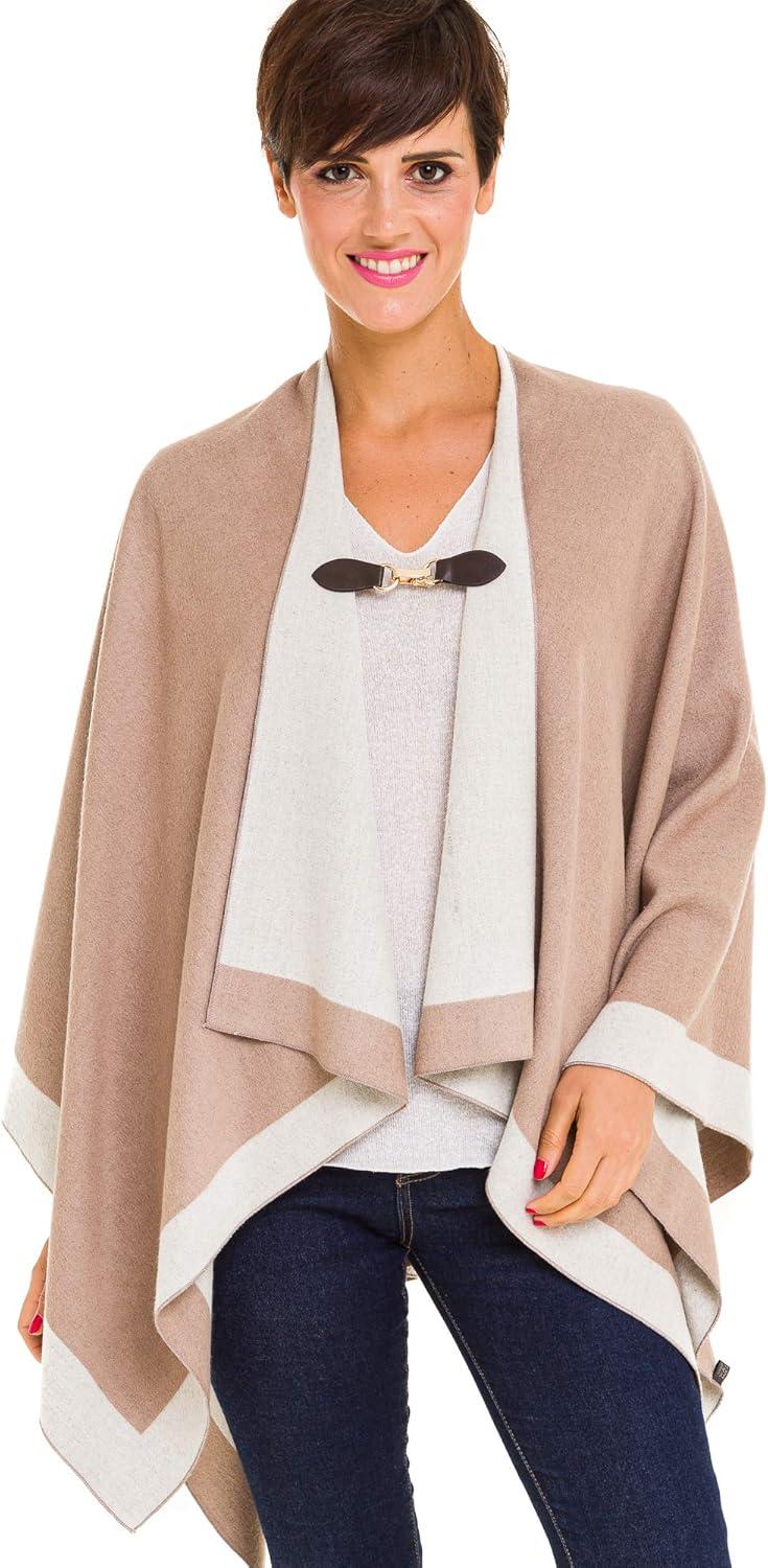 Cardigan Poncho Cape: Women Elegant Cardigan Shawl Wrap Sweater Coat for Fall Winter(Border Design -Beige and Khaki)