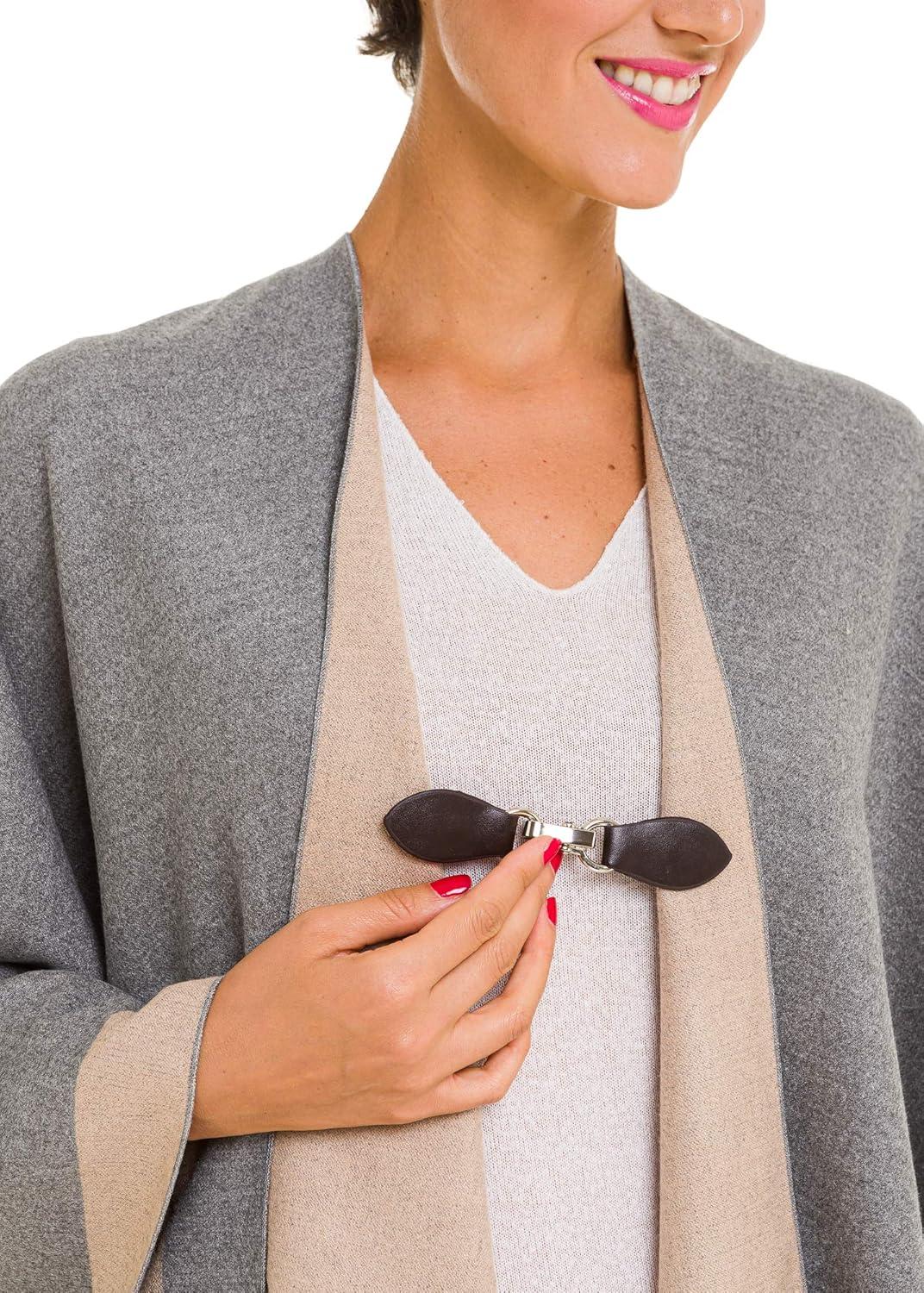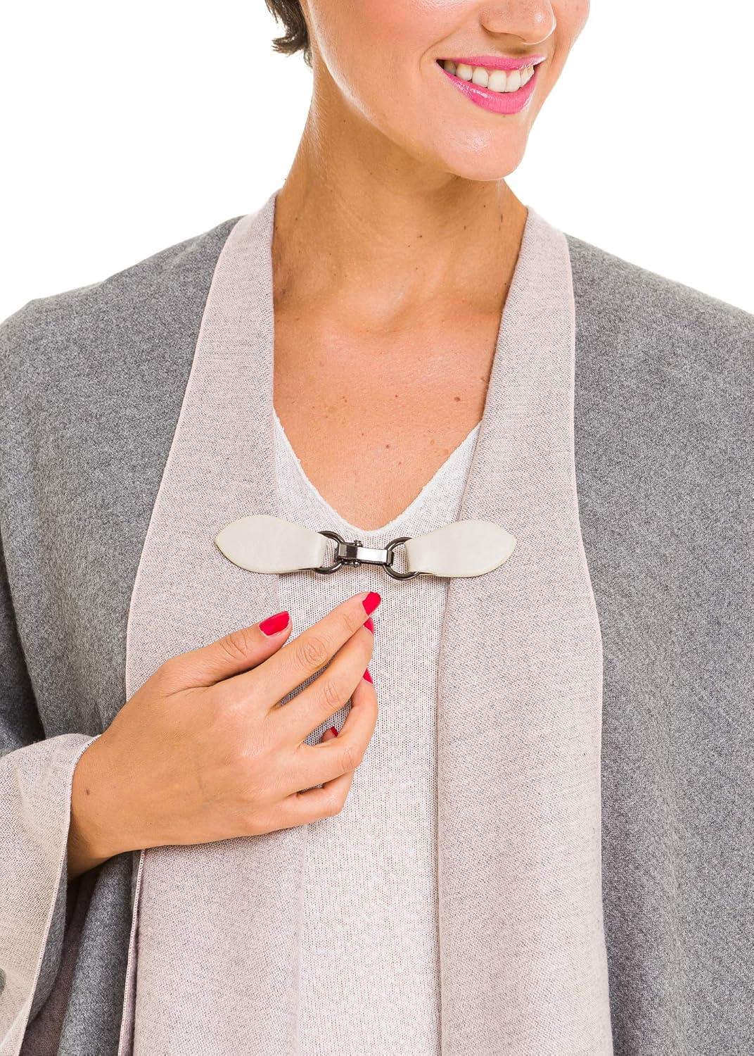 Clip Holder Buckle Clasp Pin for Poncho Cape Cardigan Wrap Shawl Accessories(Gray with Black Clamps)