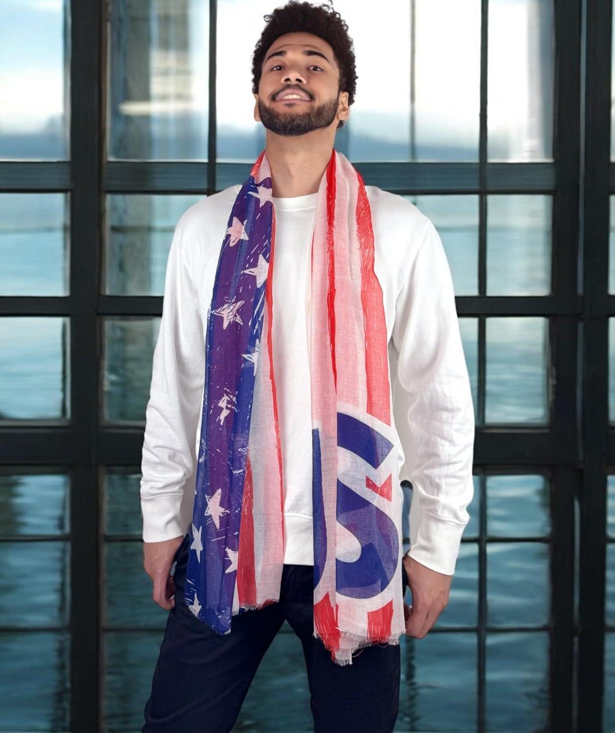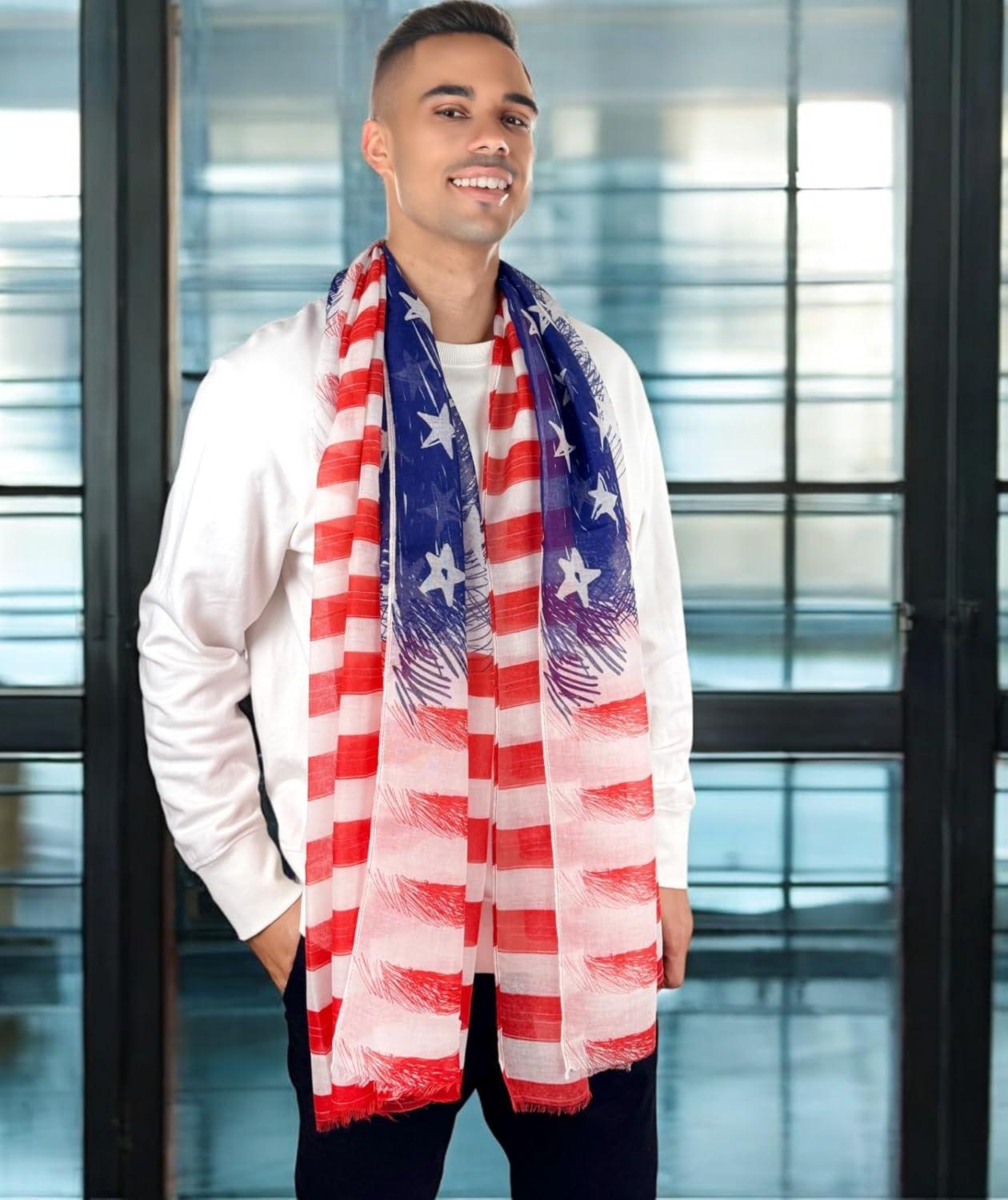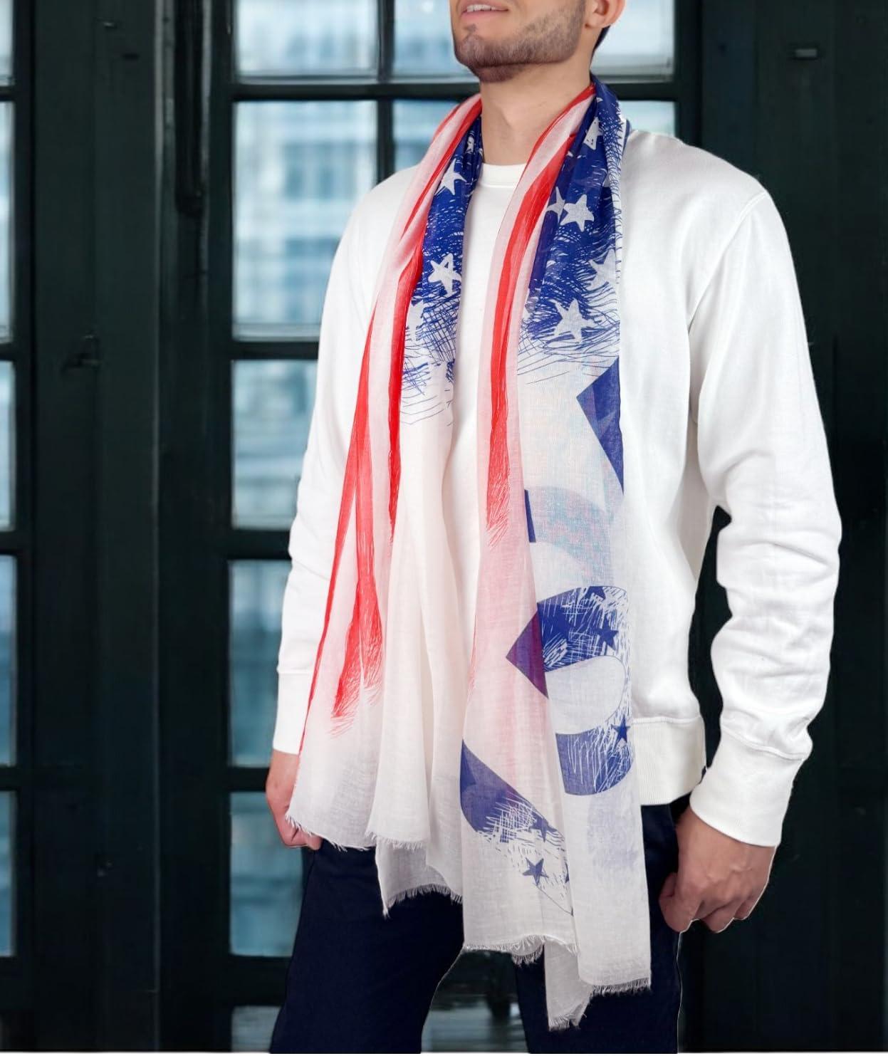 MELIFLUOS DESIGNED IN SPAIN USA American Flag Scarf for Women and Men Unisex Lightweight Long Soft Scarves for Summer Fall(Usa Design Collection – Especial Edition 4)