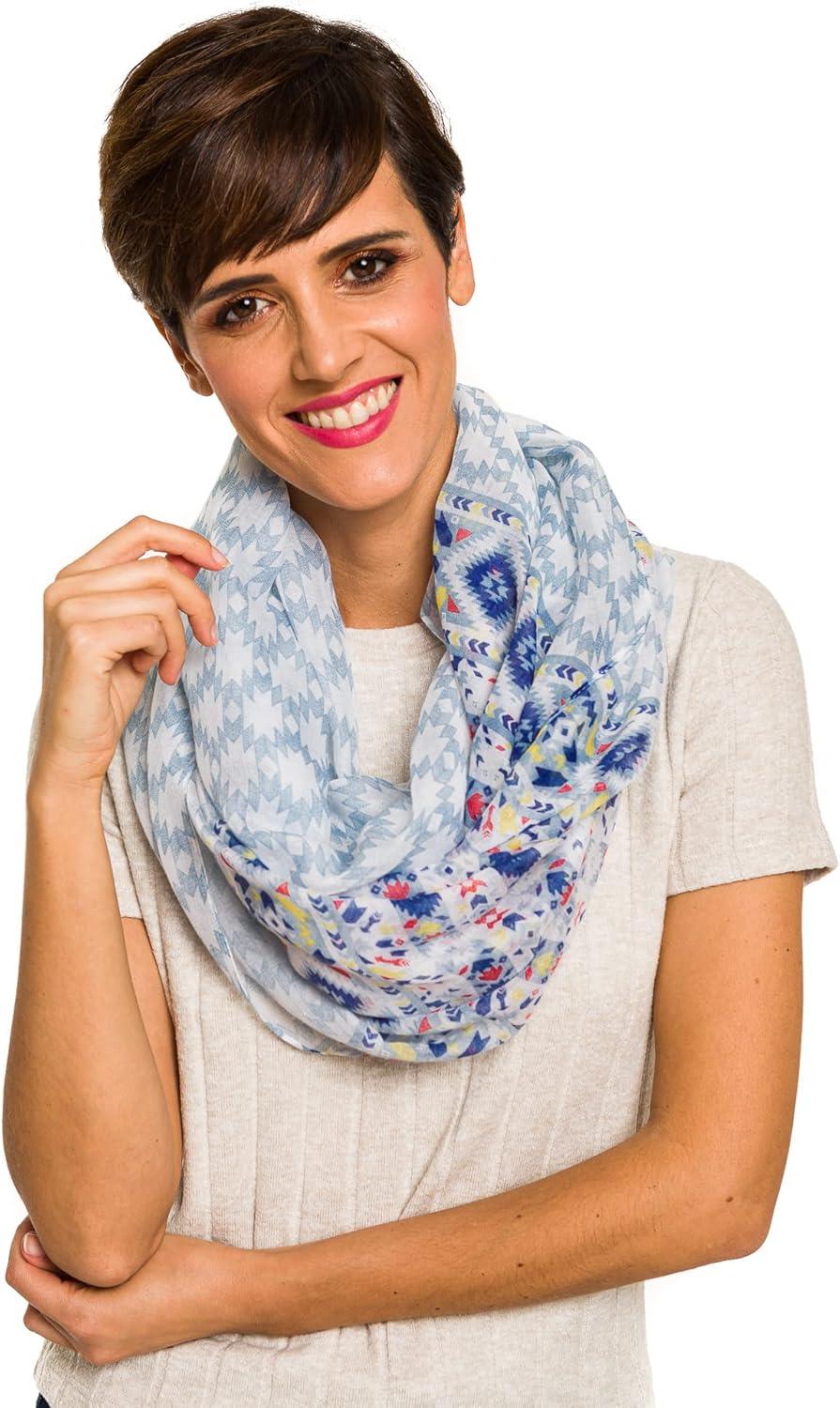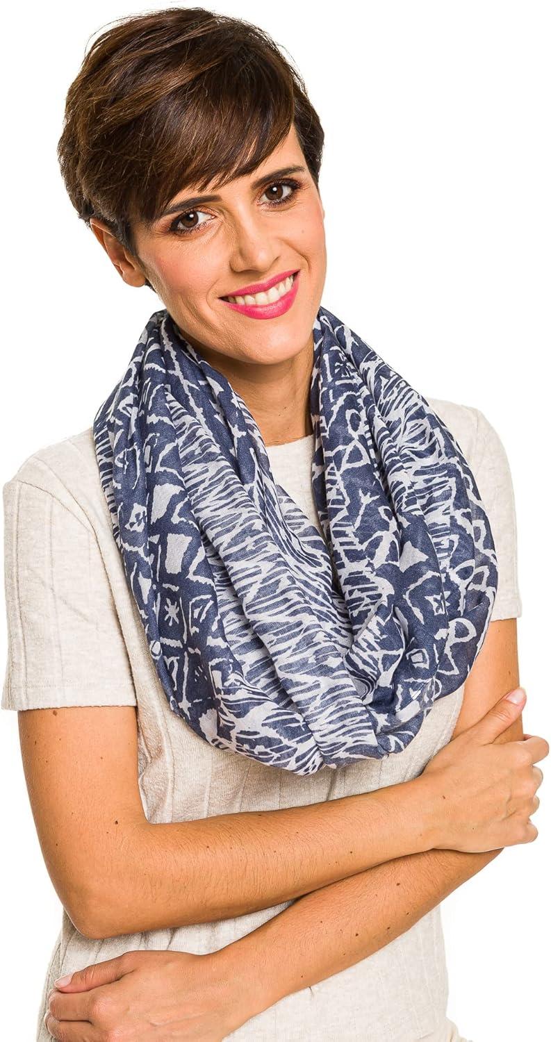Infinity Scarf for Women Lightweight Fashion Scarves for Summer Fall(Ibiza Collections 16 -Blue Geometric)