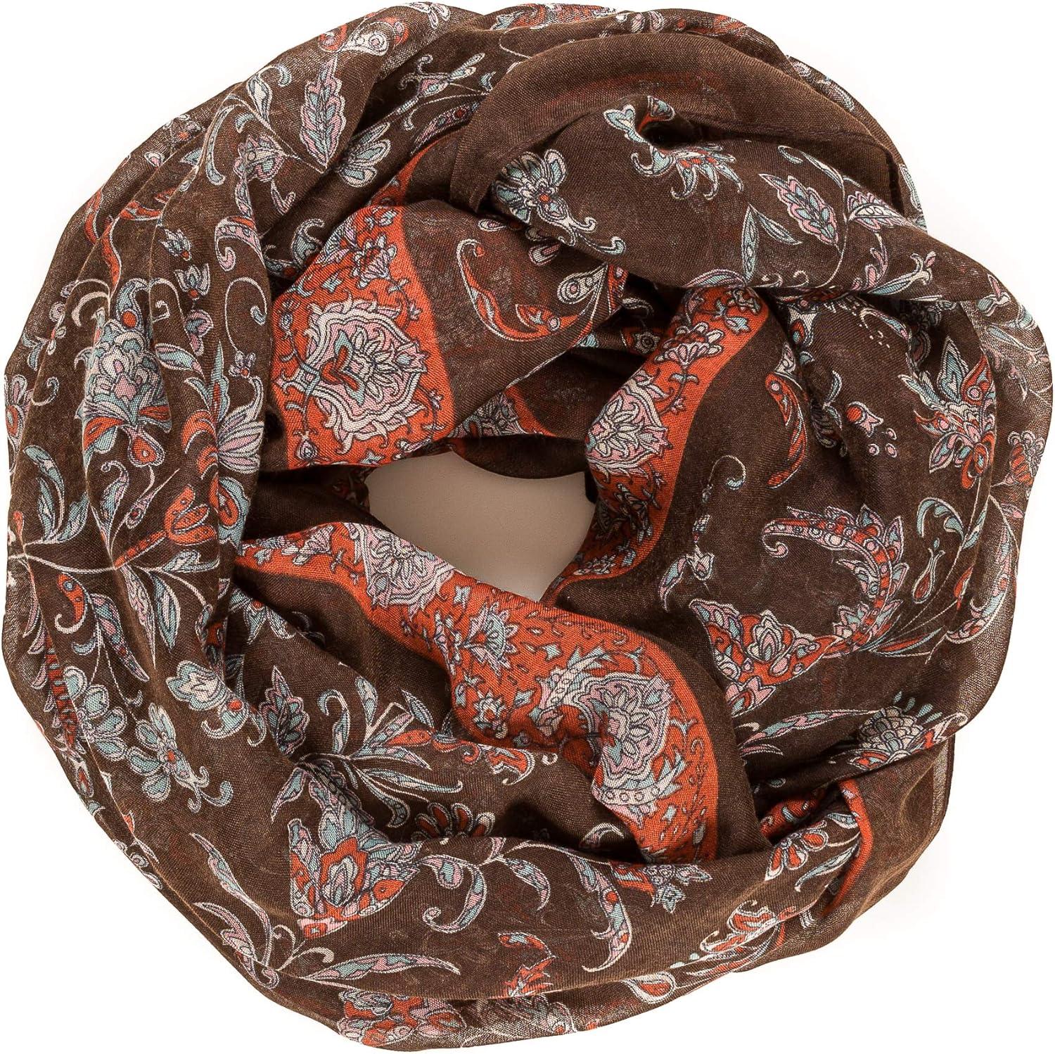 Infinity Scarf for Women Lightweight Fashion Scarves for Summer Fall(Ibiza Collections 14 – Brown Paisley)