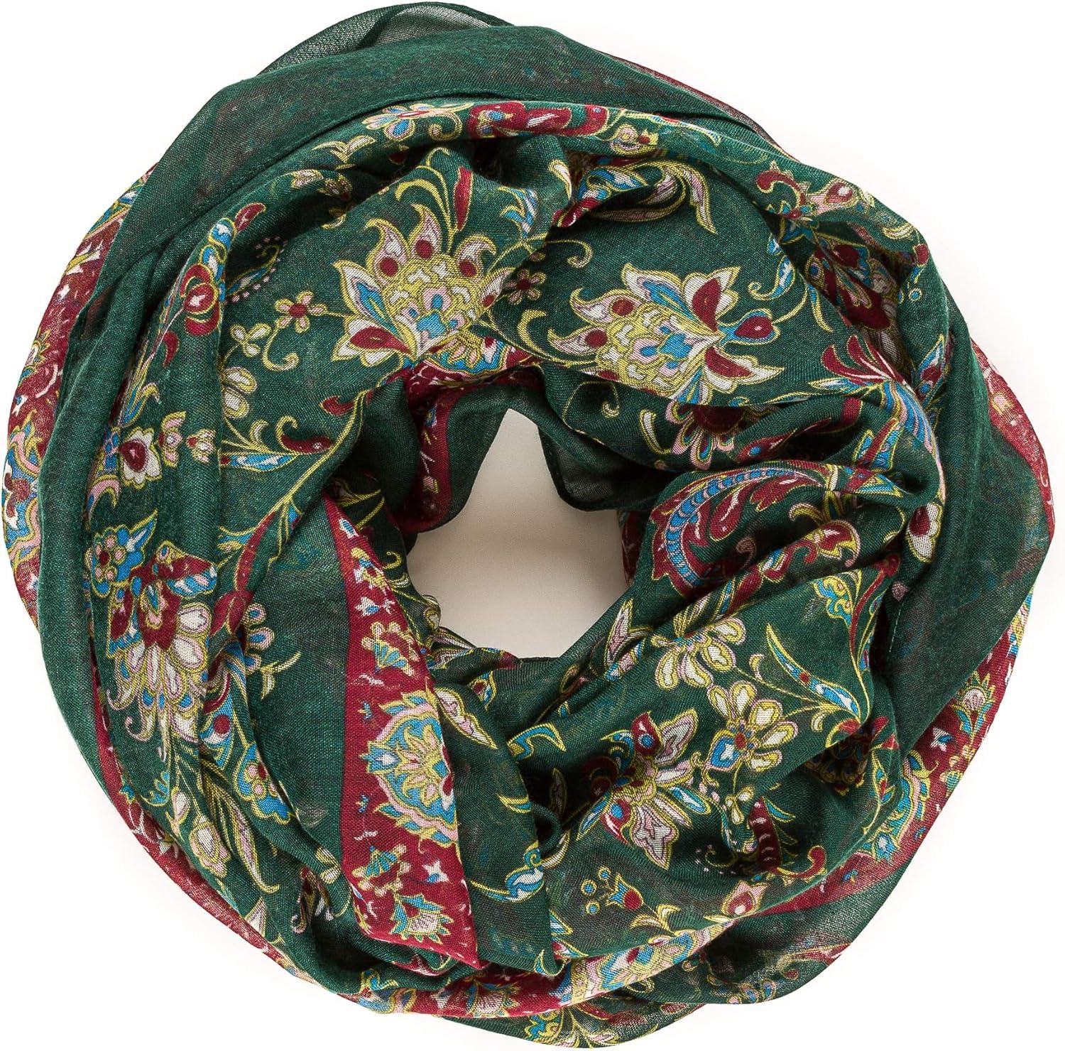 Infinity Scarf for Women Lightweight Fashion Scarves for Summer Fall(Ibiza Collections 14 – Green Paisley)