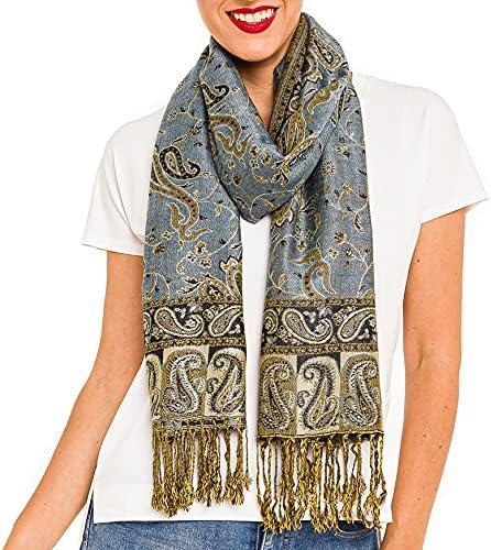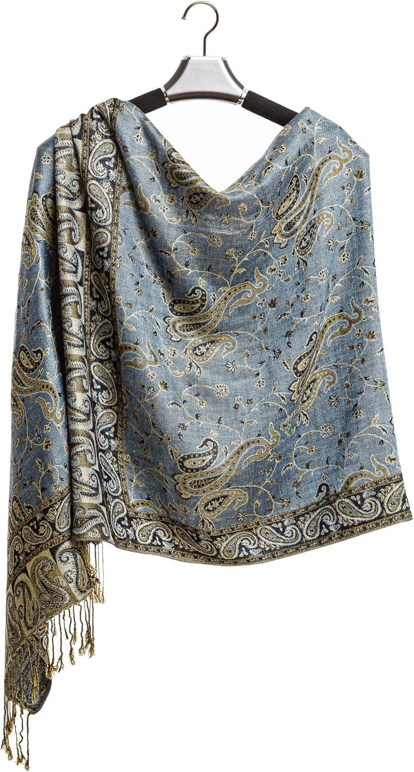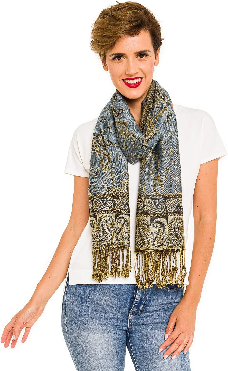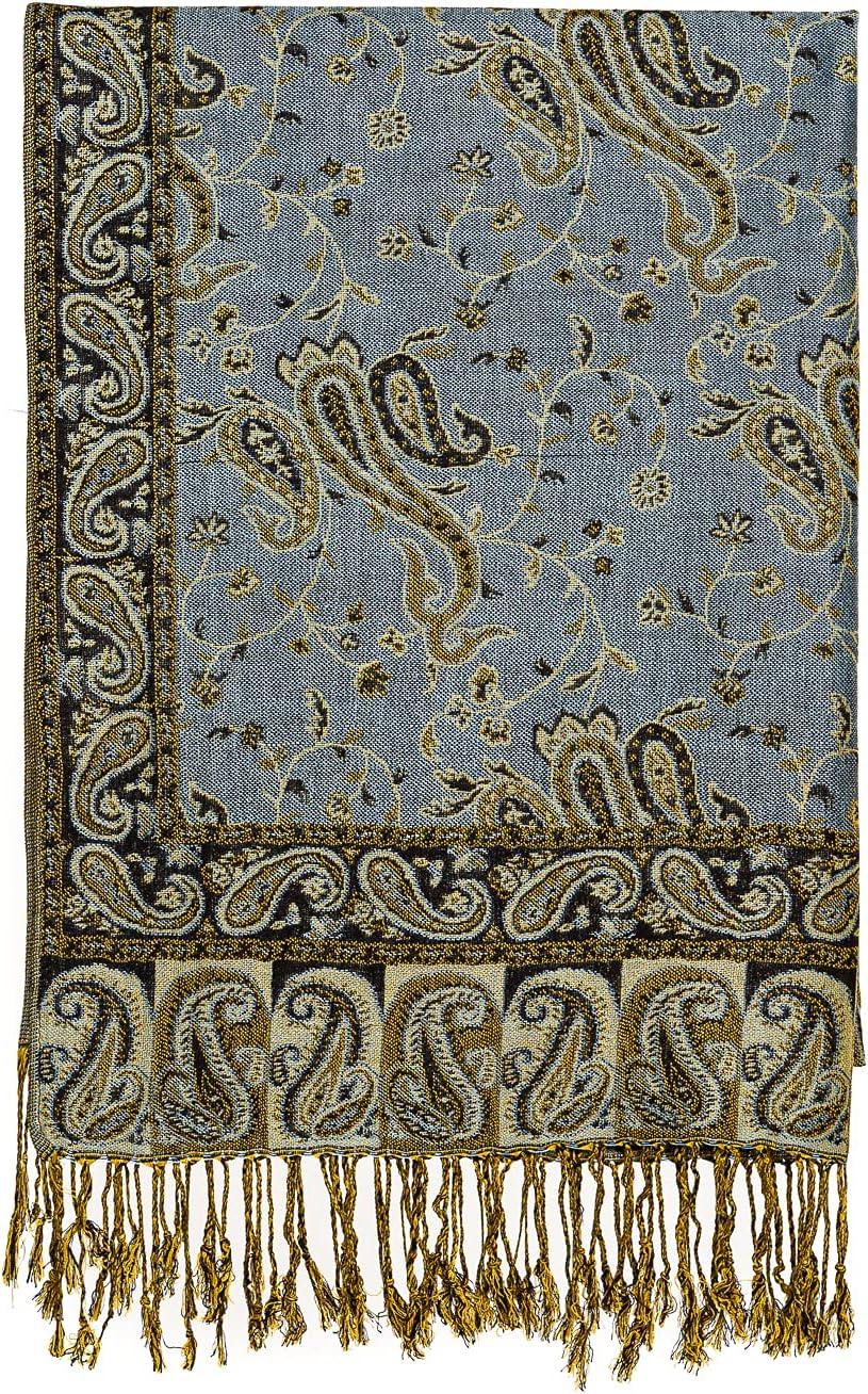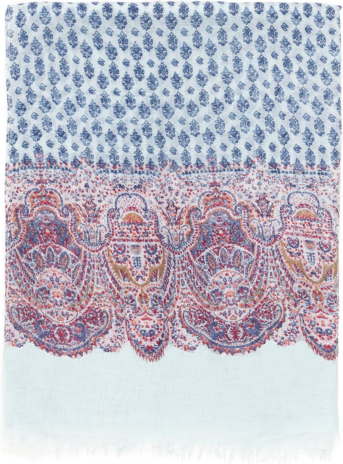 Scarf for Women Spanish Design Elegant Long Shawl Scarves for Summer Fall(Baza Collection – Light Blue Paisley Ii)