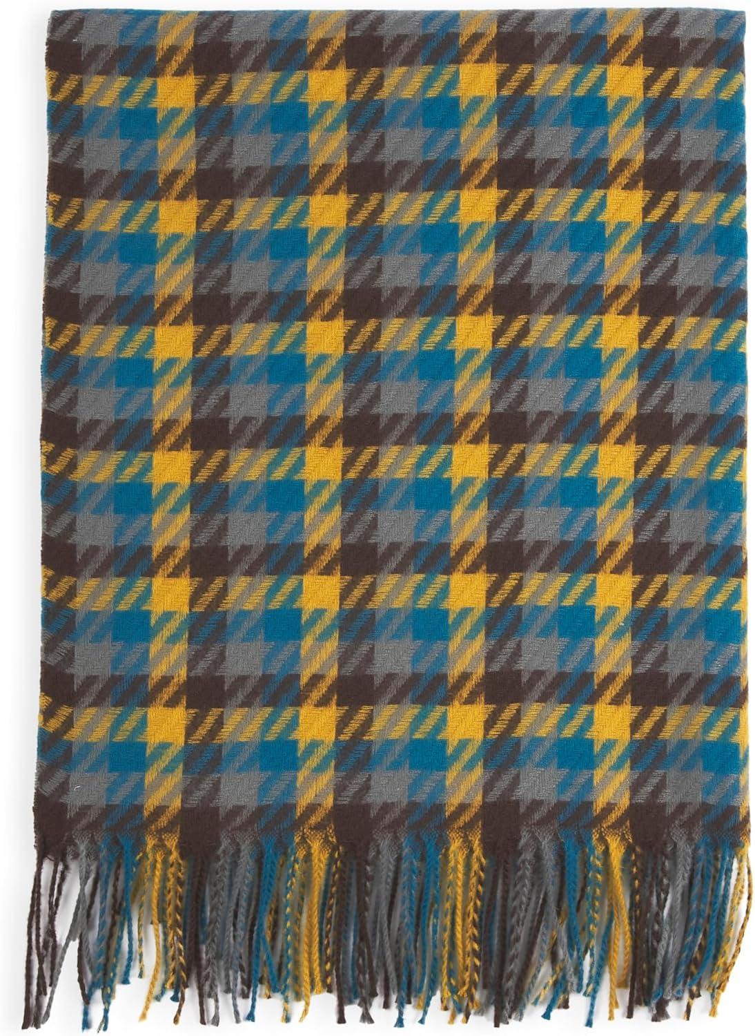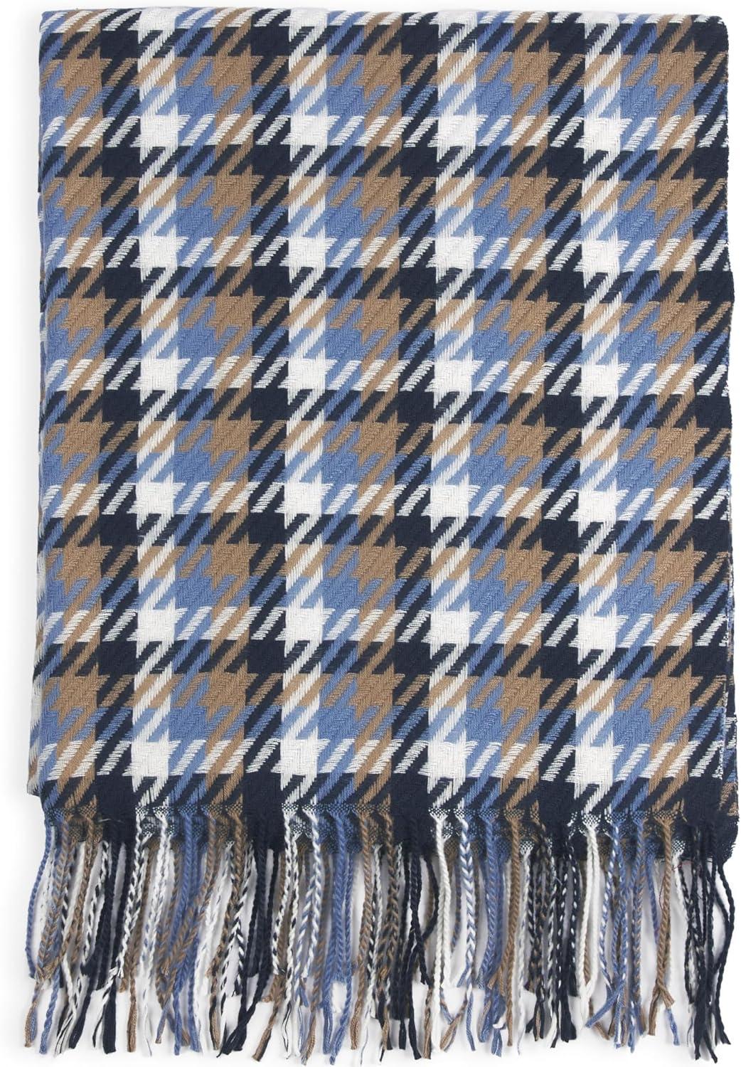 Scarf for Men Reversible Elegant Classic Cashmere Feel Scarves for Fall Winter(Bilbao Collection 4 – Blue Beige Checker)