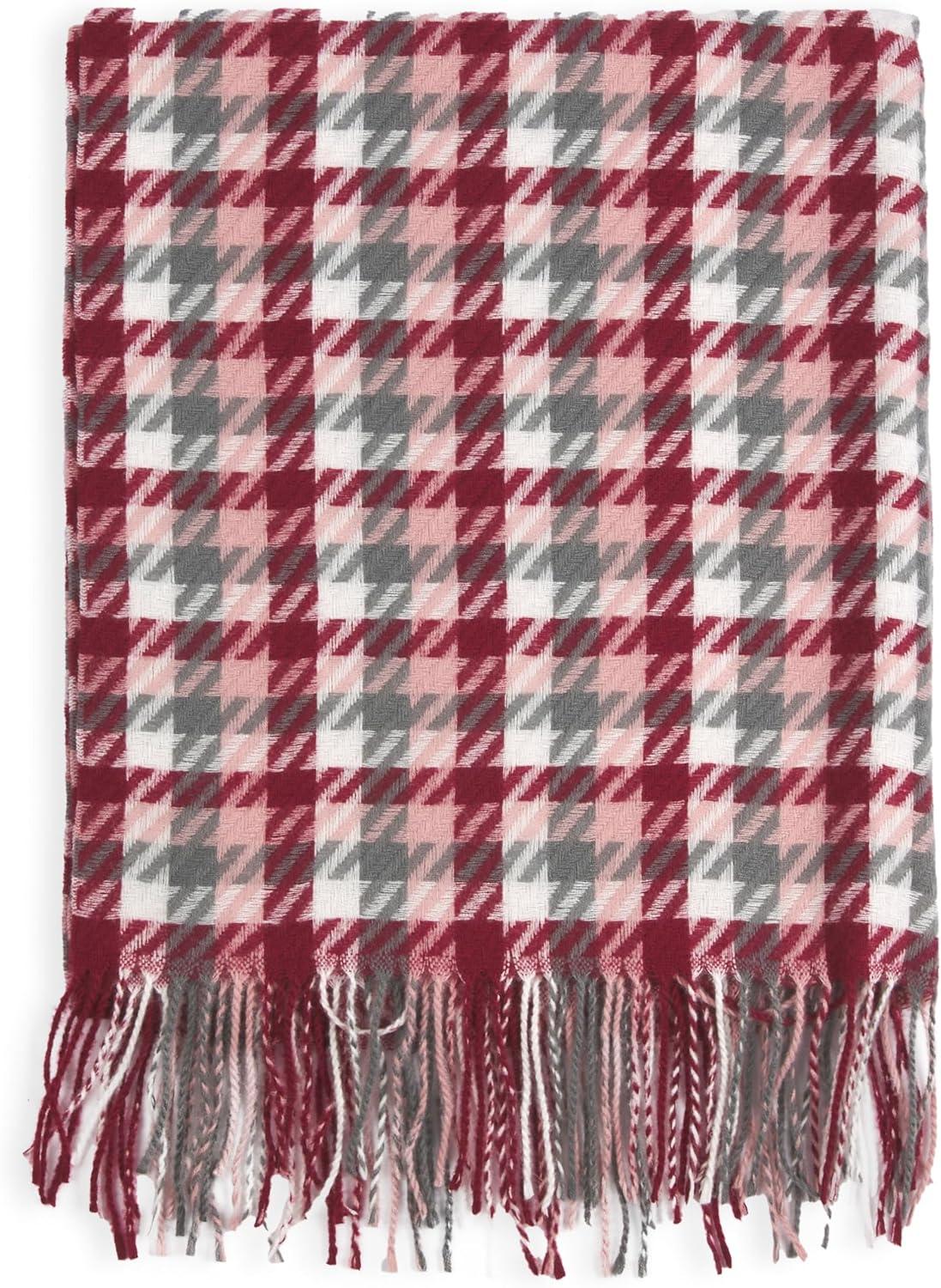 Scarf for Men Reversible Elegant Classic Cashmere Feel Scarves for Fall Winter(Bilbao Collection 8 – Red Gray Checker)