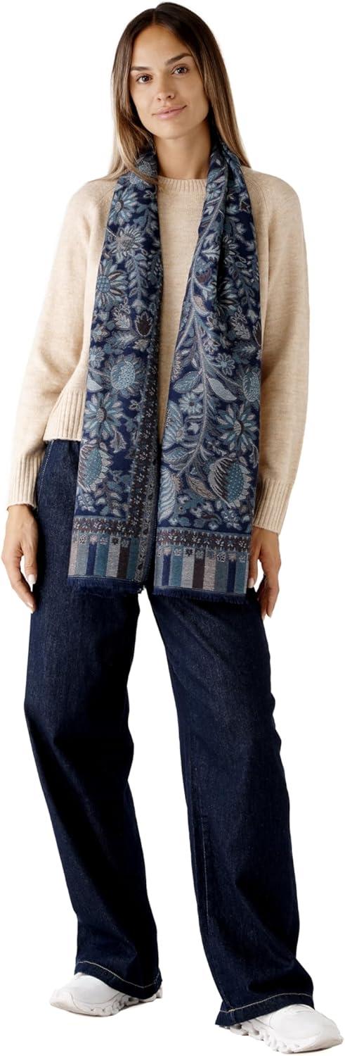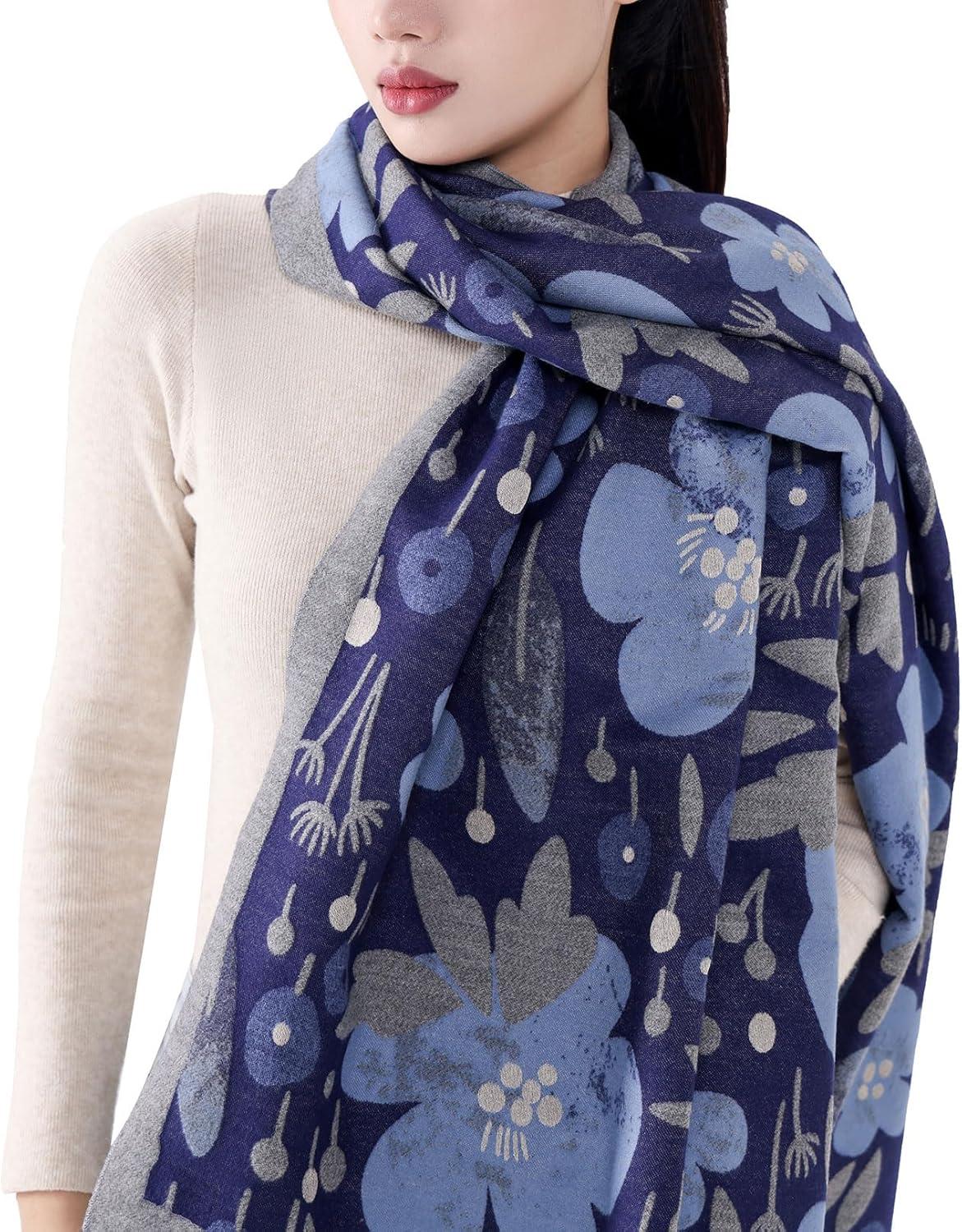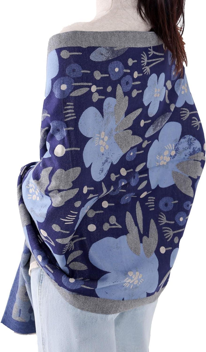 Scarf for Women Spanish Design Elegant Long Shawl Scarves for Summer Fall(Clares Collection – Floral Pattern Navy)