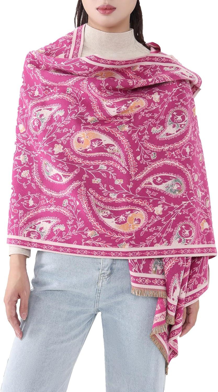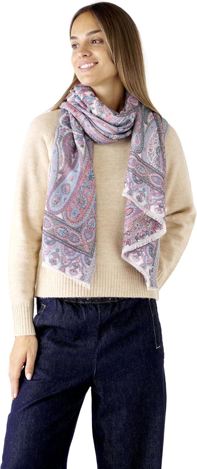 MELIFLUOS DESIGNED IN SPAIN Women’s Fashion Scarves Long Shawl Cardigan Wrap Large Warm Long Scarves(Palma Design – Fuschia Paisley)