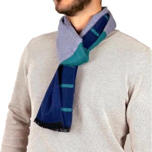 Scarf for Men Reversible Elegant Classic Cashmere Feel Scarves for Fall Winter(San Sebastian Collections 08 – Blue Navy and Green)