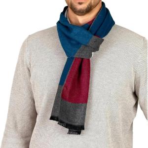 Scarf for Men Reversible Elegant Classic Cashmere Feel Scarves for Fall Winter(San Sebastian Collections 01 – Gray Blue and Wine)