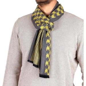 Scarf for Men Reversible Elegant Classic Cashmere Feel Scarves for Fall Winter(San Sebastian Collections 07 – Gray and Yellow Geometric Design)