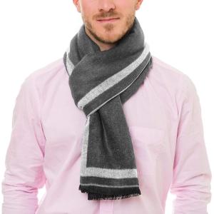 Scarf for Men Reversible Elegant Classic Cashmere Feel Scarves for Fall Winter(Bilbao Collection 5 – White Grey Stripe)