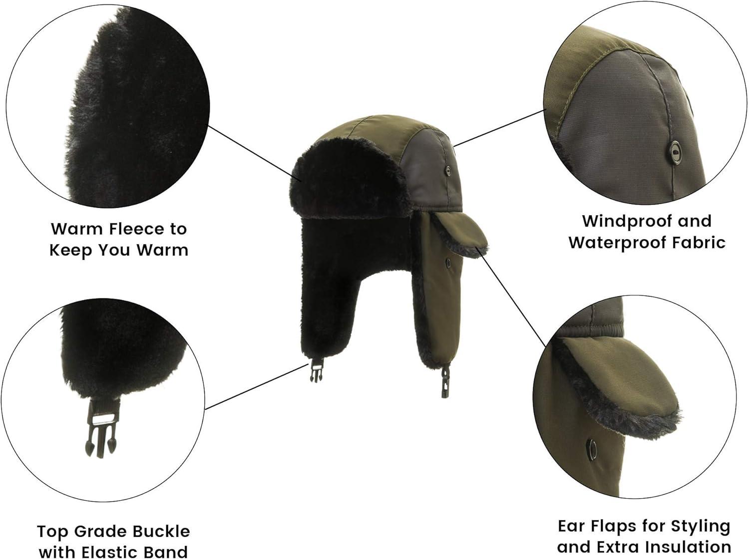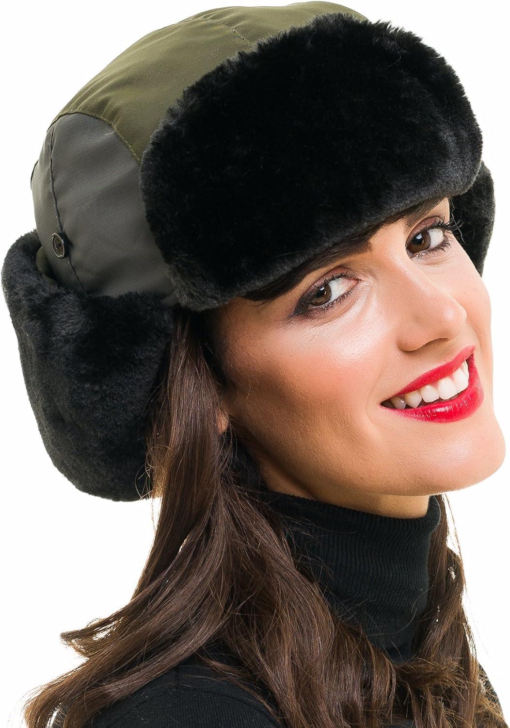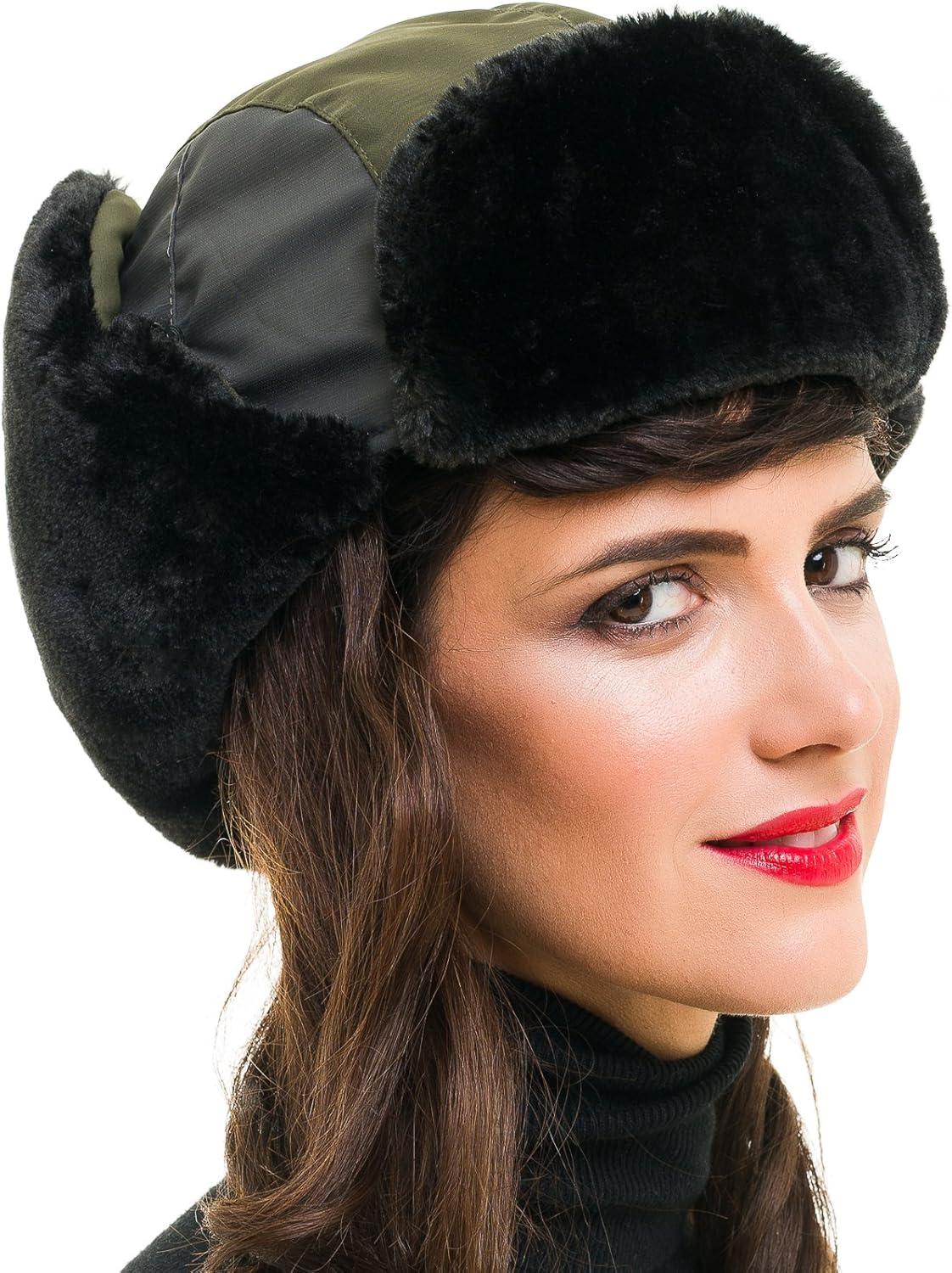MELIFLUOS DESIGNED IN SPAIN Trapper Hat for Men and Women Russian Warm Fur Ski Fall Winter Hunting(Army Green)