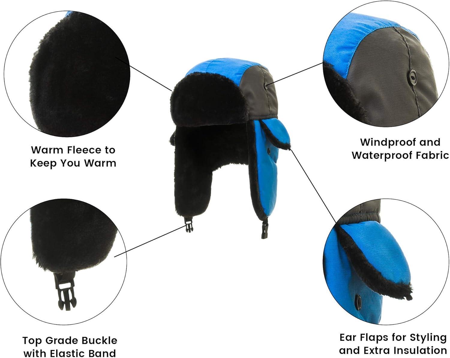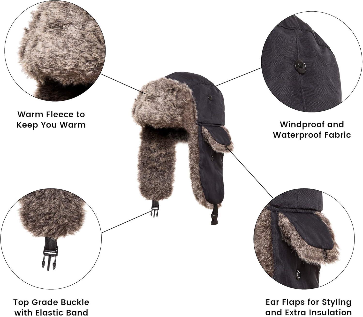 MELIFLUOS DESIGNED IN SPAIN Trapper Hat for Men and Women Russian Warm Fur Ski Fall Winter Hunting(Black)