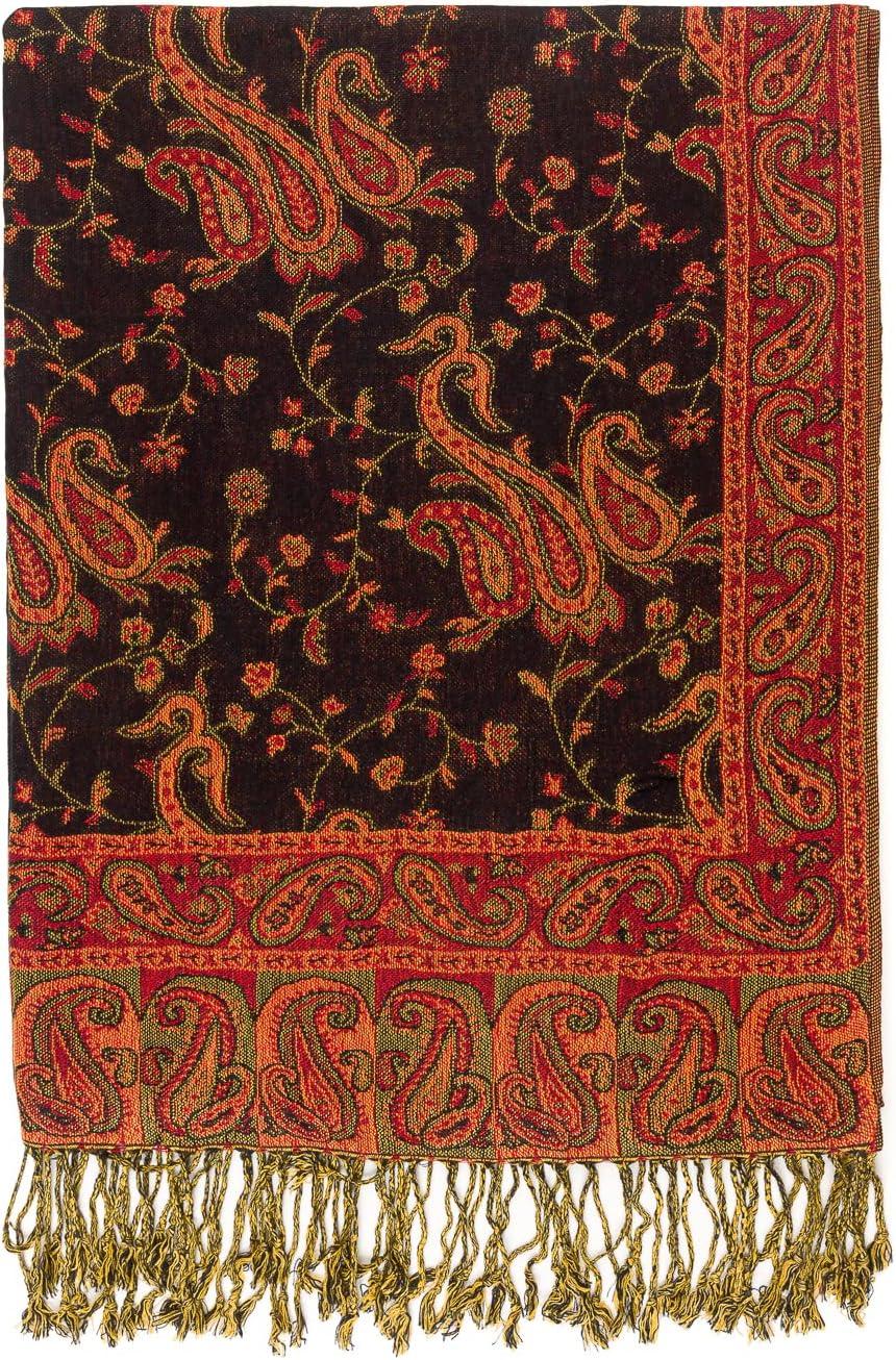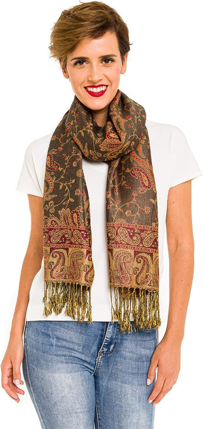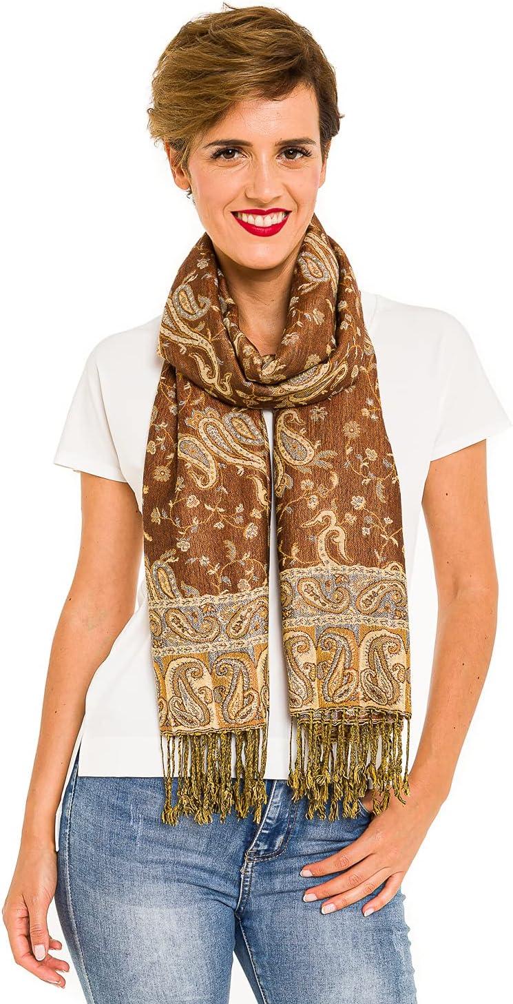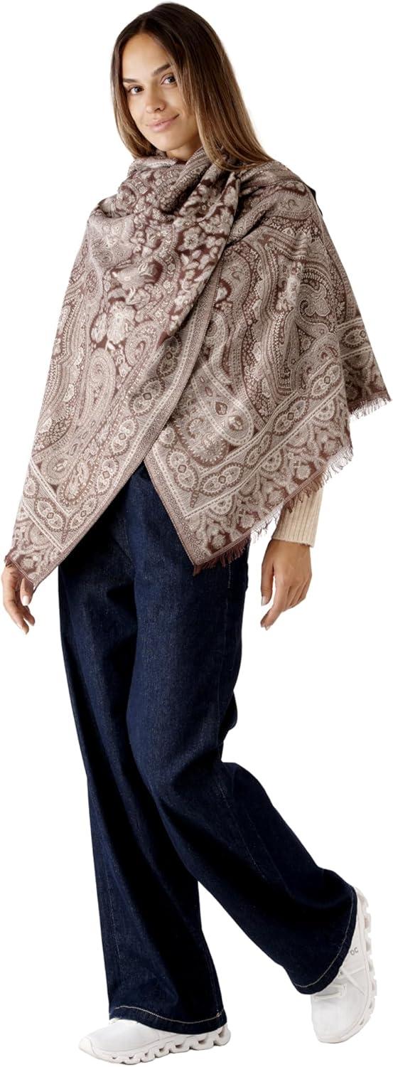 Scarf for Women Spanish Design Elegant Long Shawl Scarves for Summer Fall(Baza Collection – Chocolate Paisley)