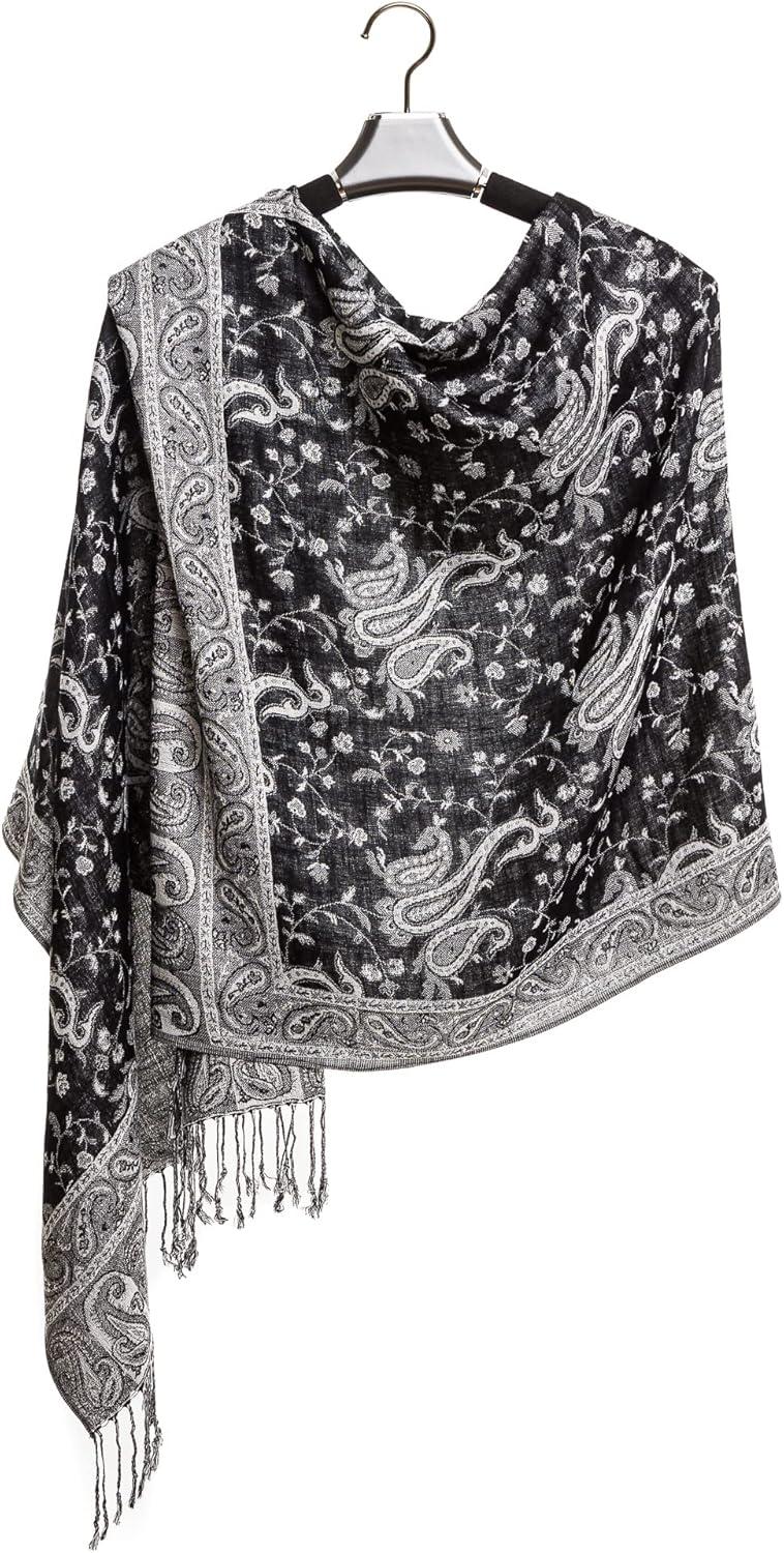 Scarf for Women Spanish Design Elegant Long Shawl Scarves for Summer Fall(Baza Collection – Black and White Paisley)
