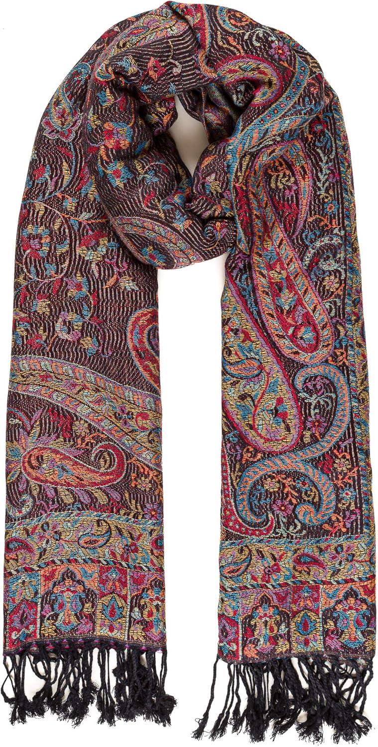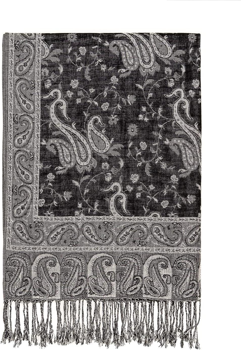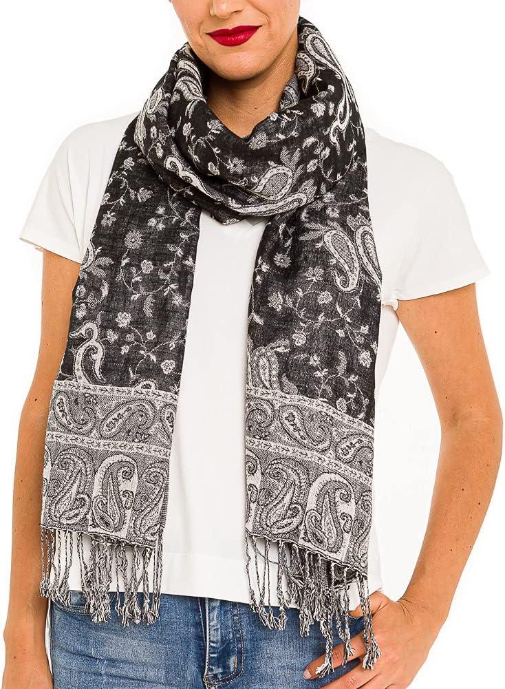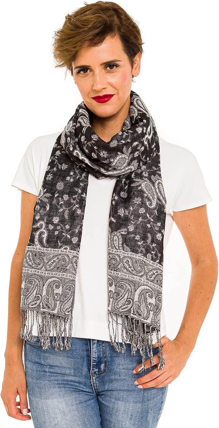 Scarf for Women Spanish Design Elegant Long Shawl Scarves for Summer Fall(Clares Collection – Paisley Pattern Black)