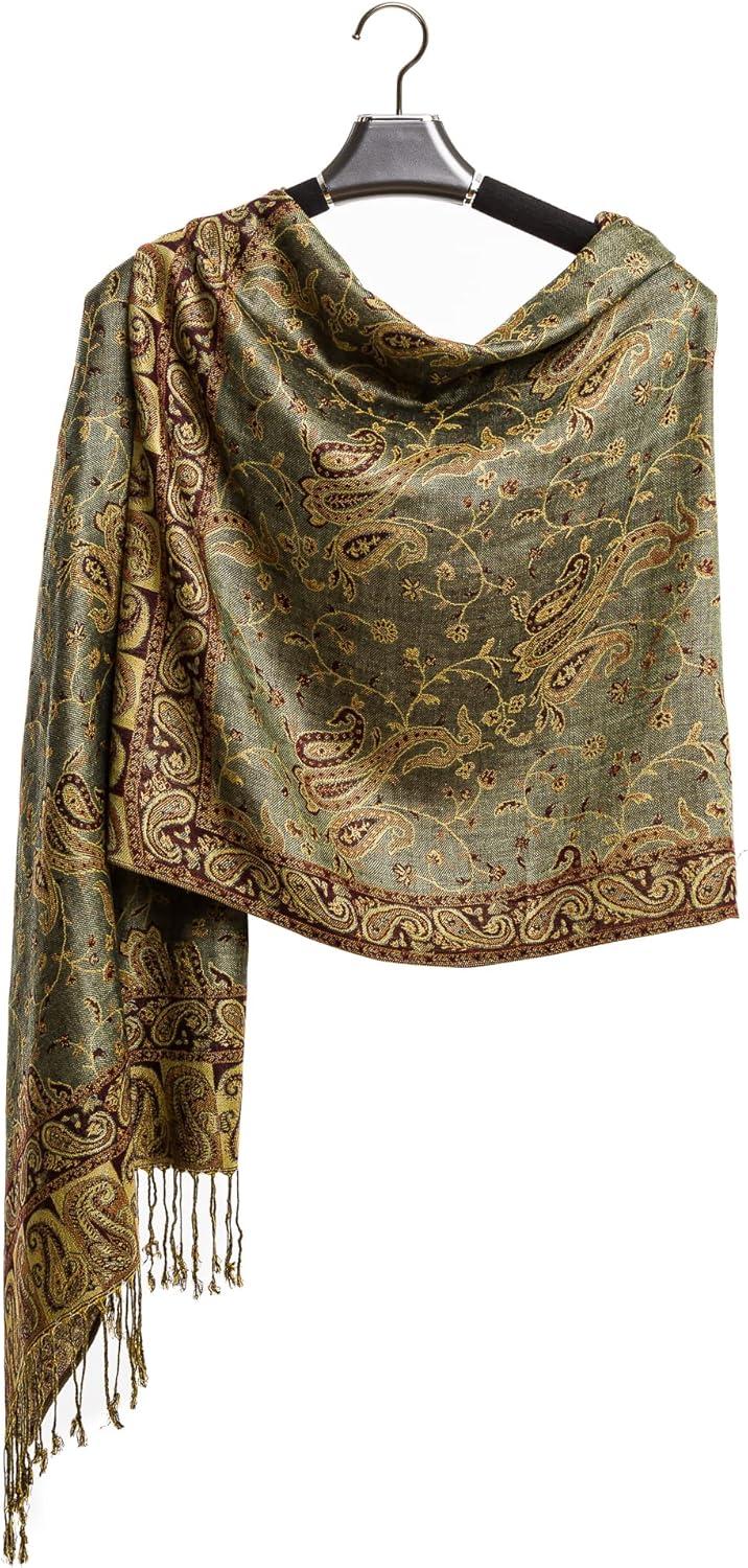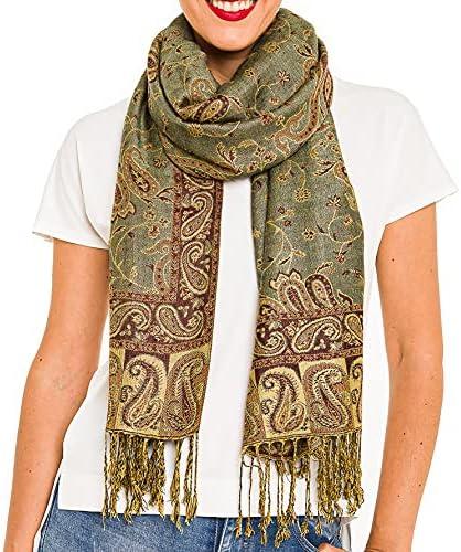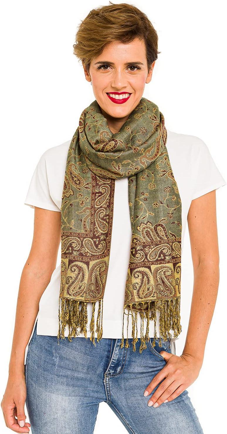 Scarf for Women Spanish Design Elegant Long Shawl Scarves for Summer Fall(Baza Collection – Army Green Paisley)