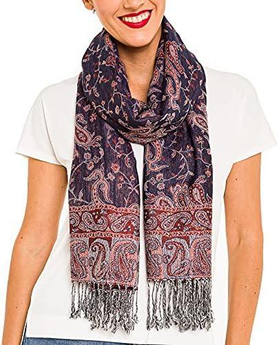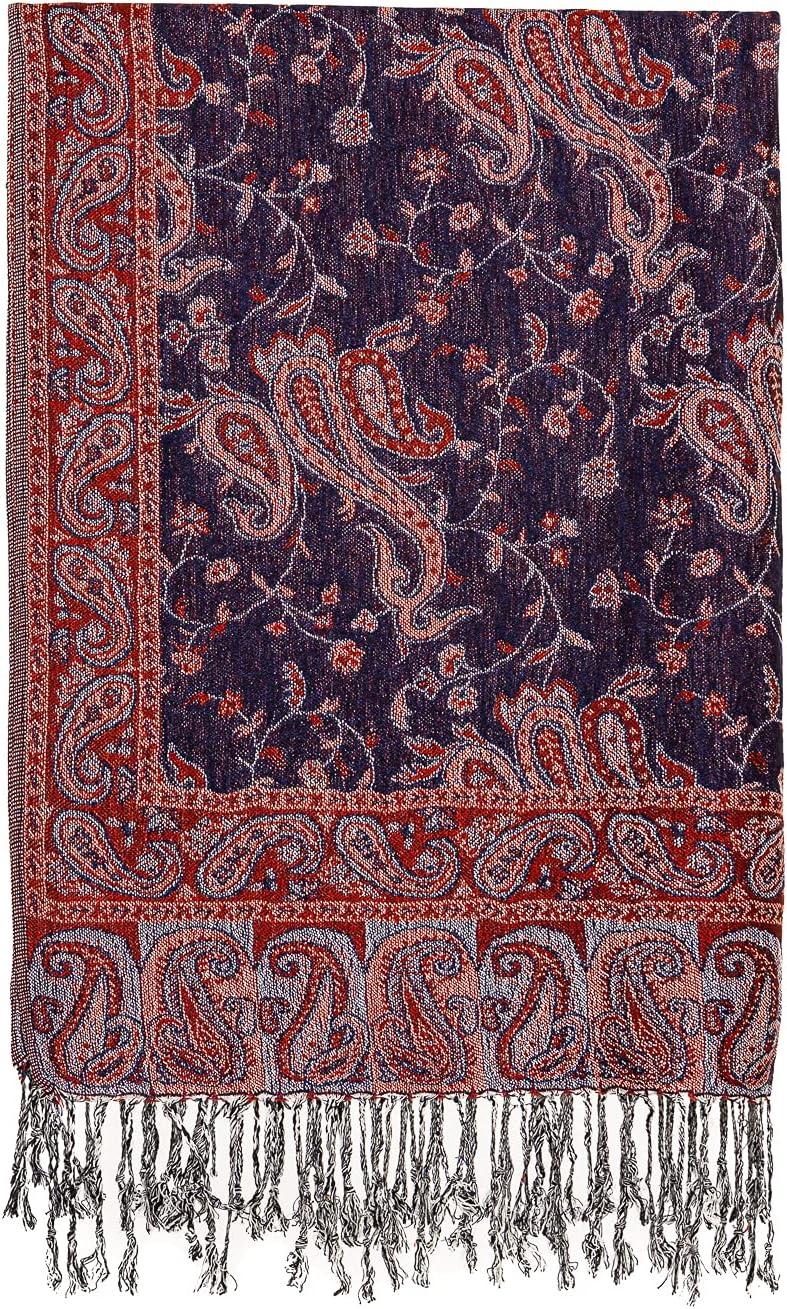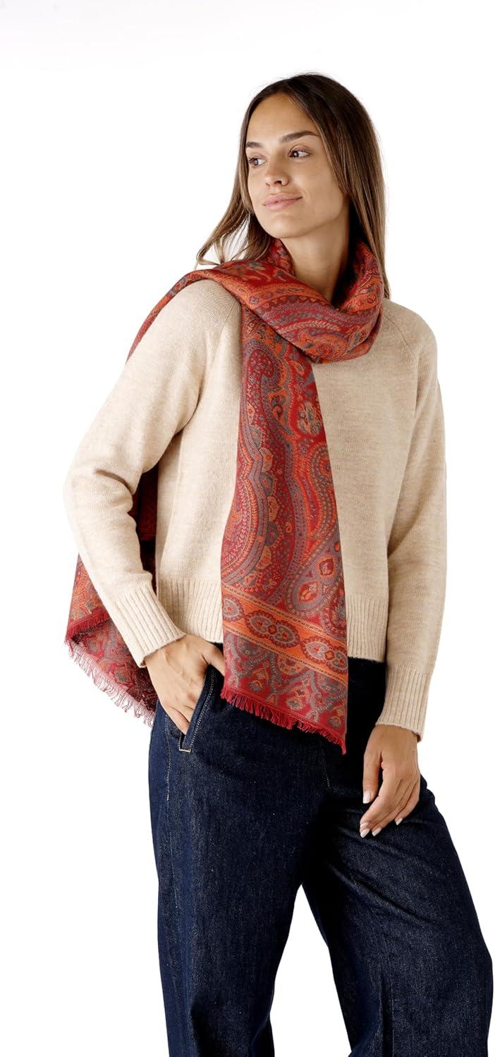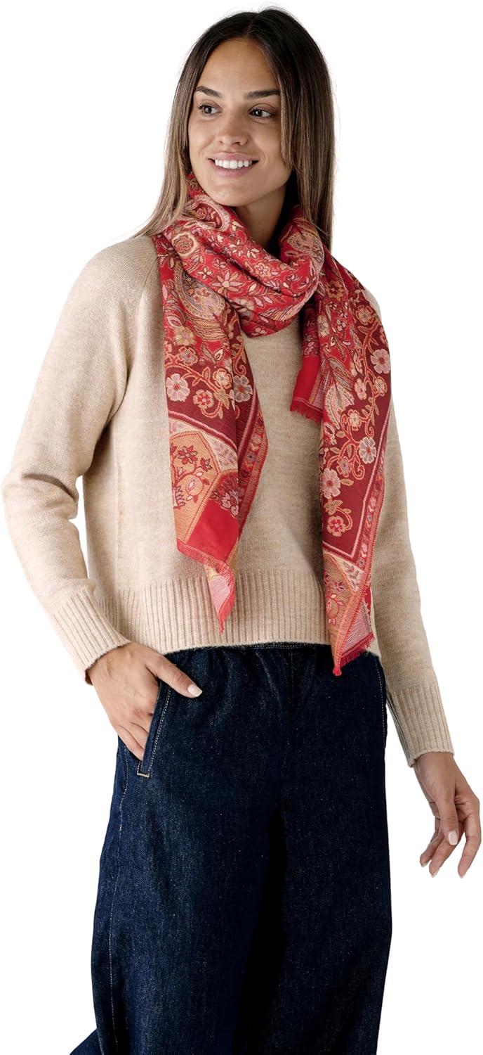 Scarf for Women Spanish Design Elegant Long Shawl Scarves for Summer Fall(Baza Collection – Rusty Red Paisley)