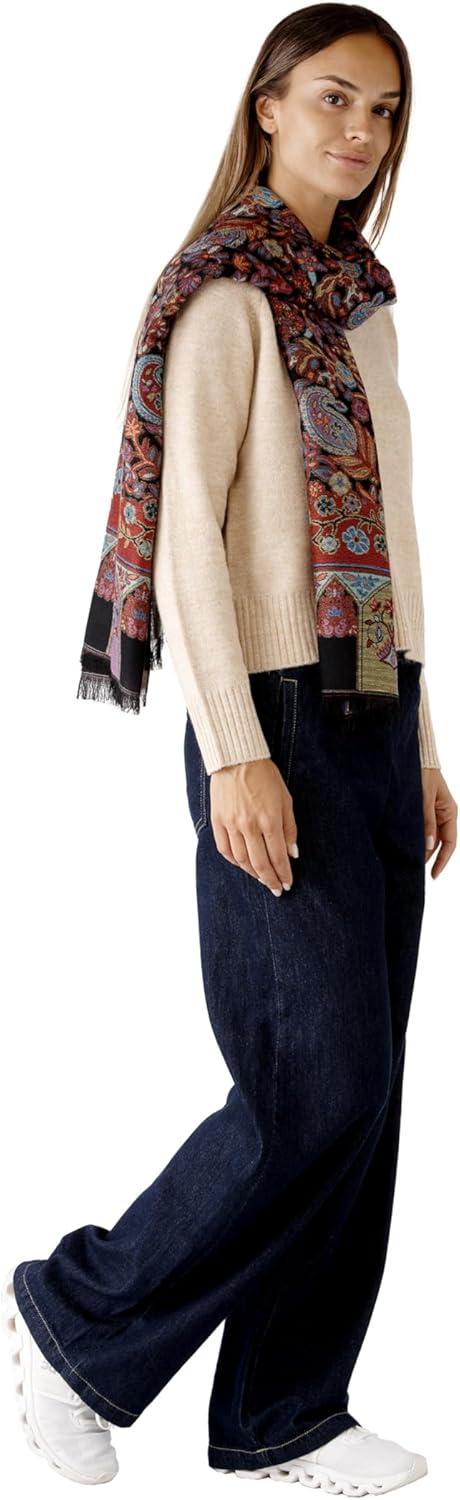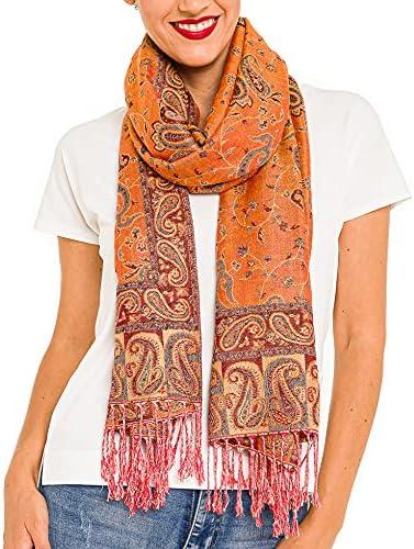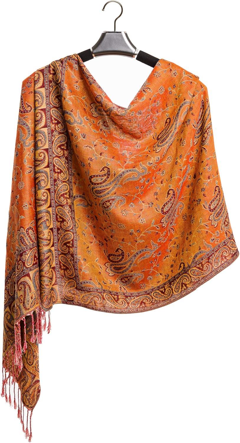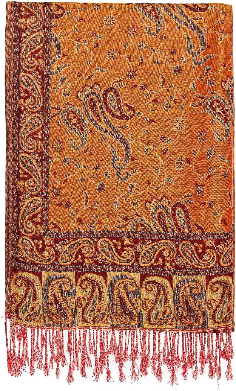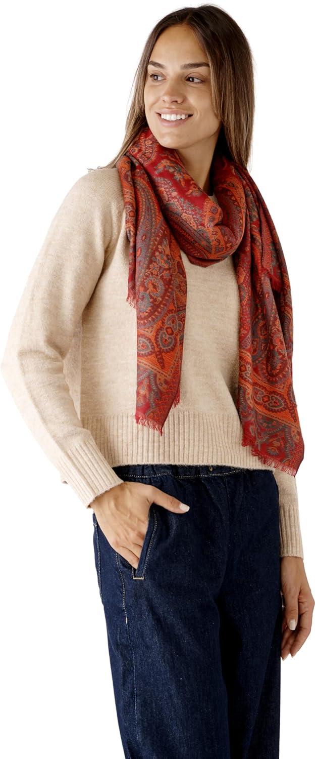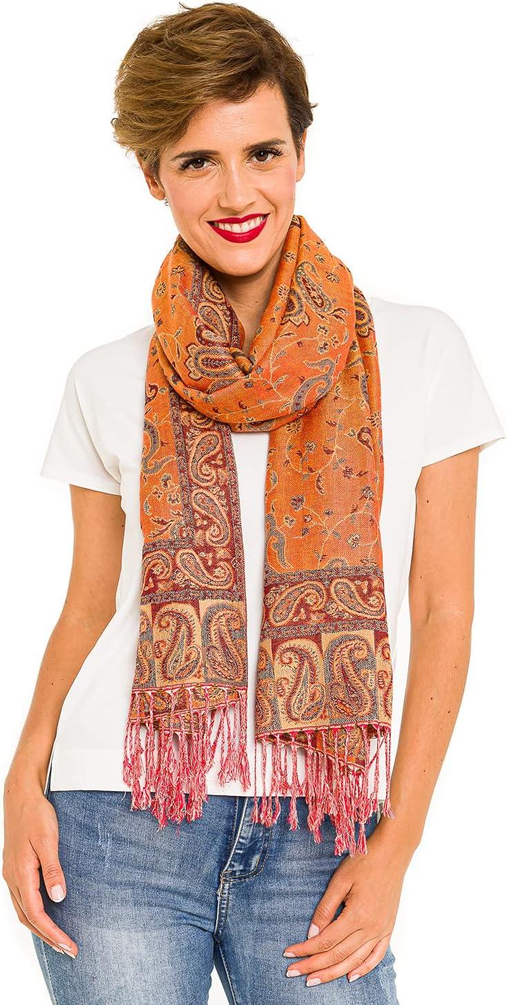 Scarf for Women Spanish Design Elegant Long Shawl Scarves for Summer Fall(Baza Collection – Orange Paisley)