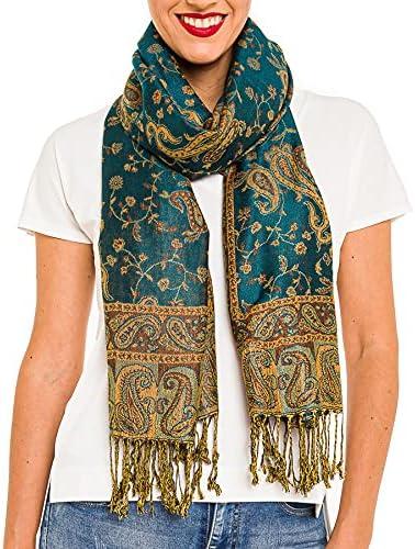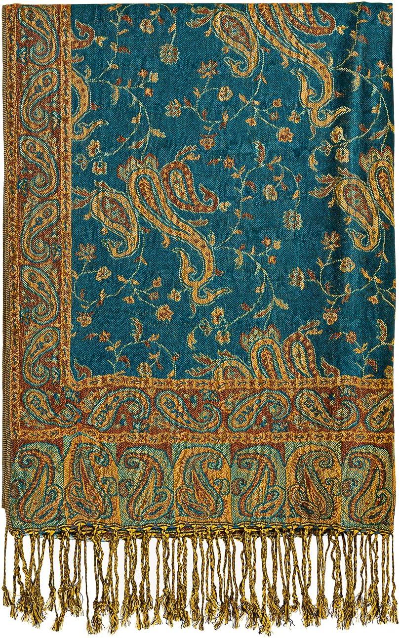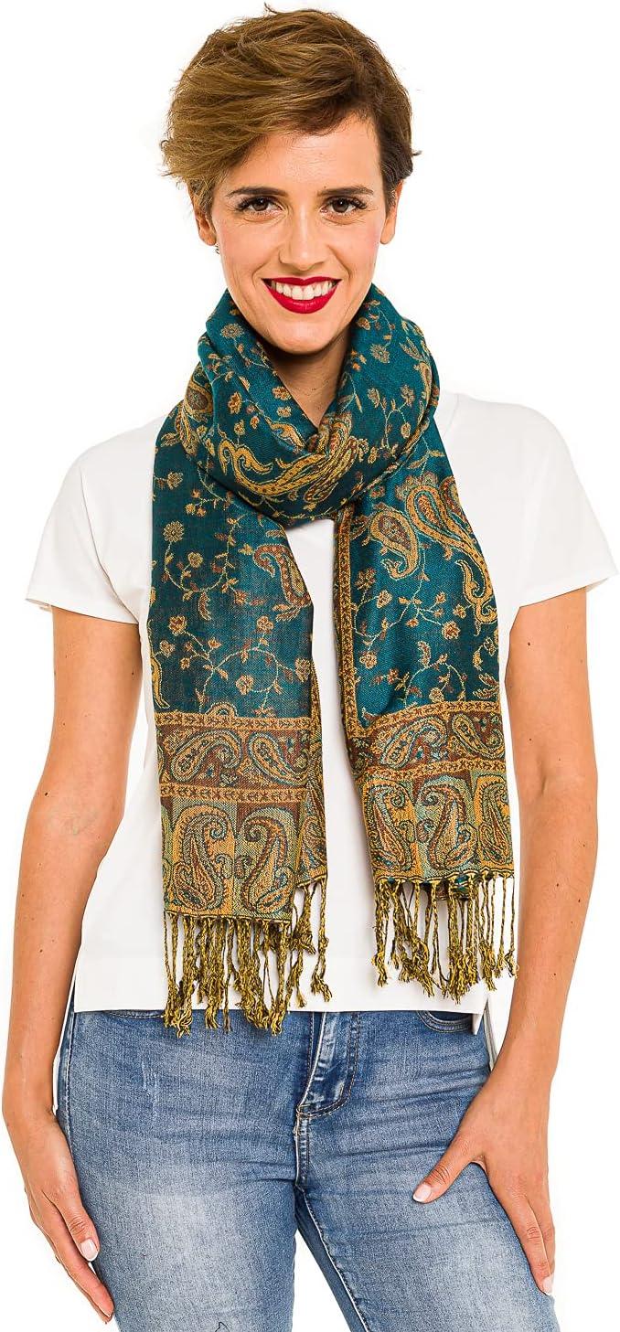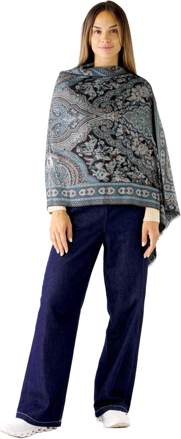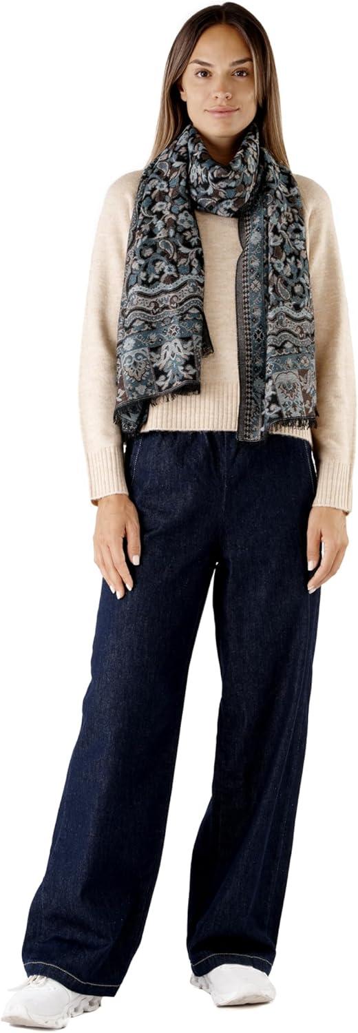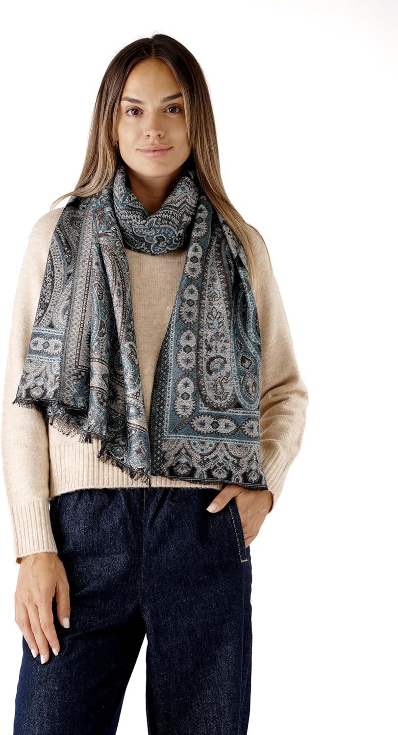 Scarf for Women Spanish Design Elegant Long Shawl Scarves for Summer Fall(Baza Collection – Teal Paisley)