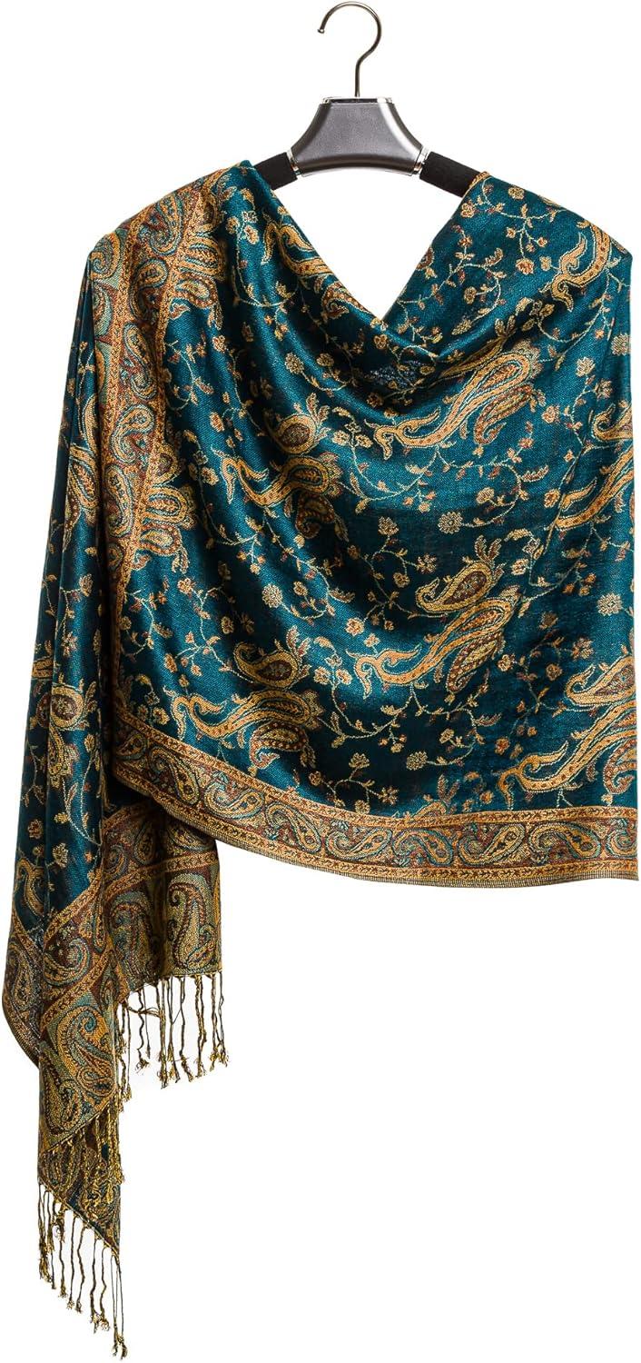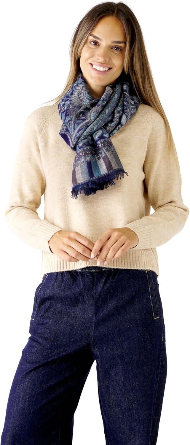 Scarf for Women Spanish Design Elegant Long Shawl Scarves for Summer Fall(Baza Collection – Peacock Blue Paisley)