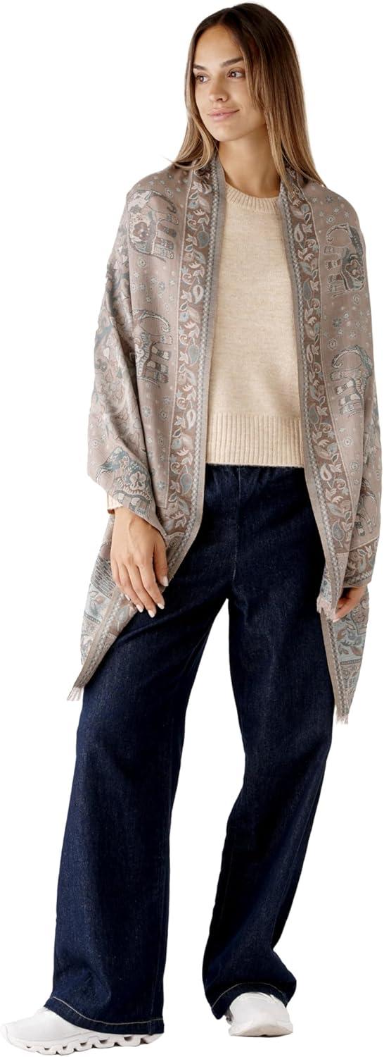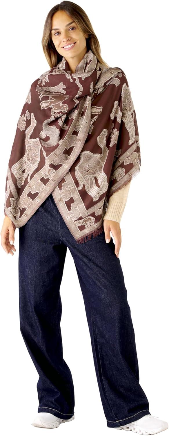 Scarf for Women Spanish Design Elegant Long Shawl Scarves for Summer Fall(Clares Collection – Elephant Design Brown)