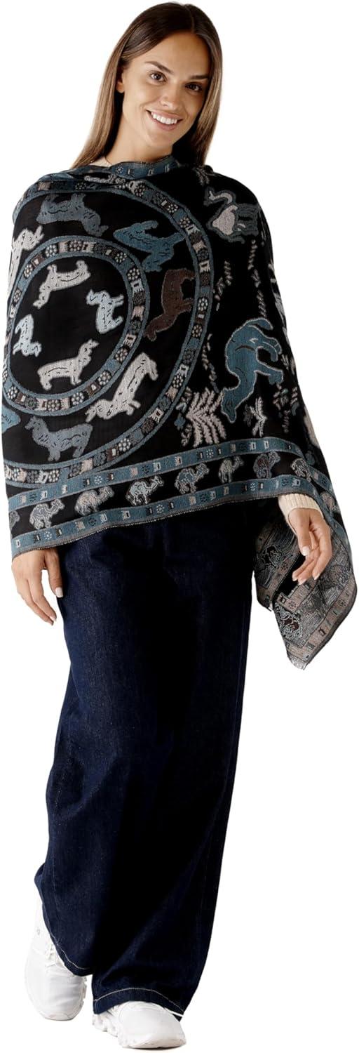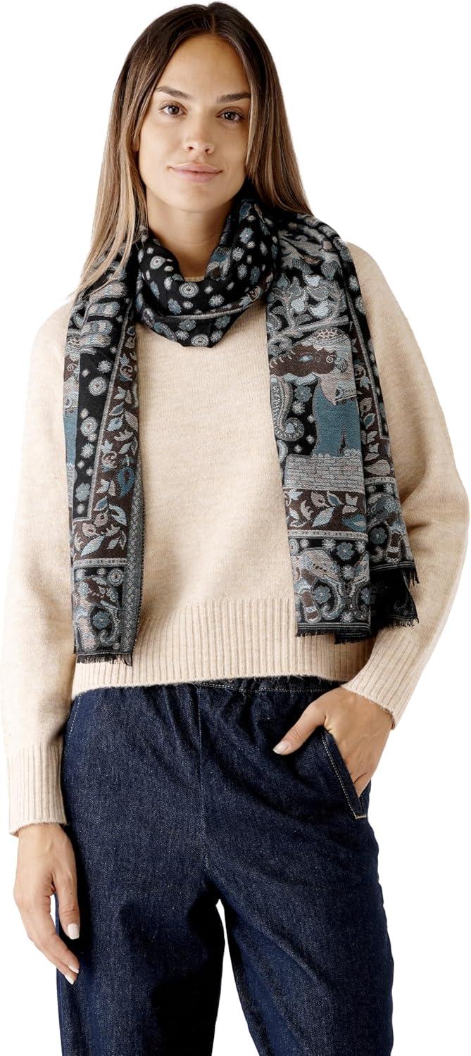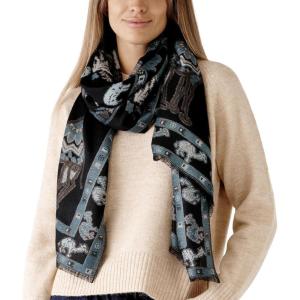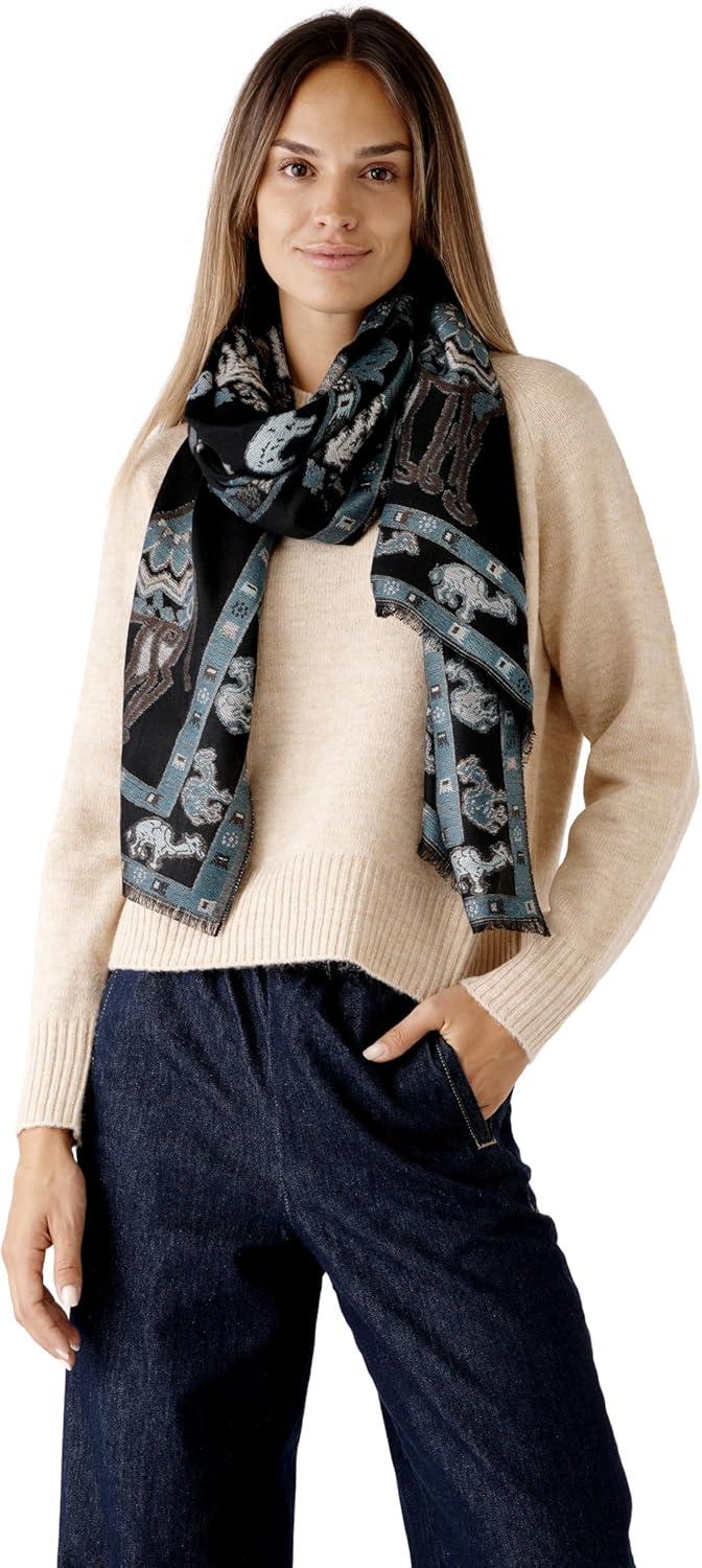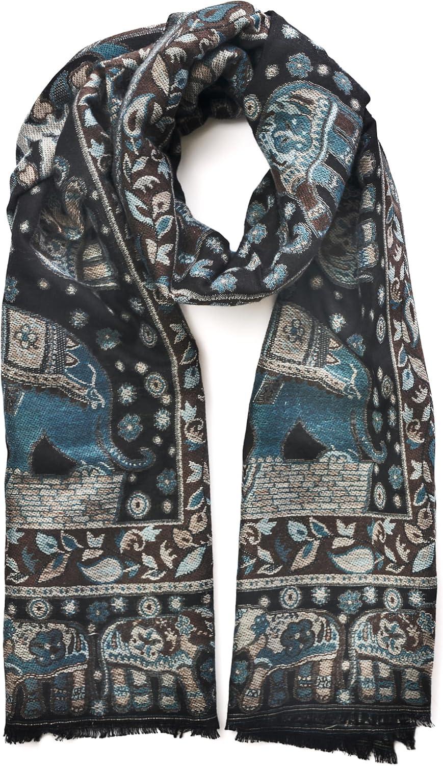 Scarf for Women Spanish Design Elegant Long Shawl Scarves for Summer Fall(Clares Collection – Elephant Design Black)