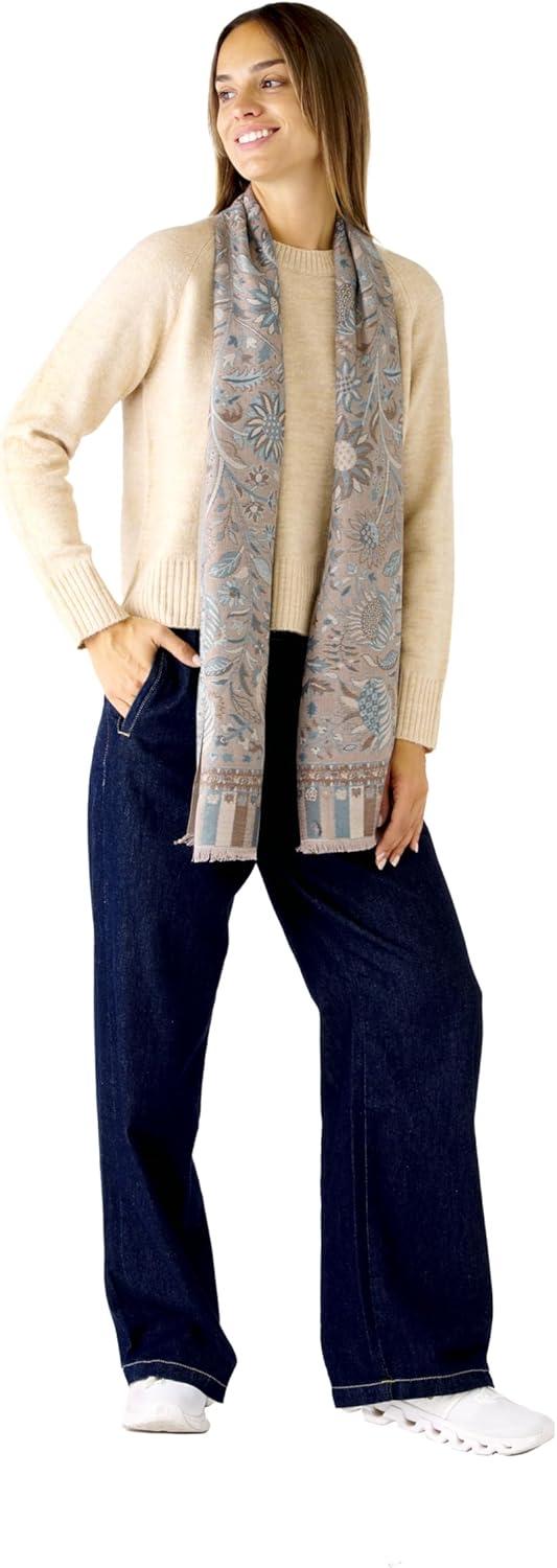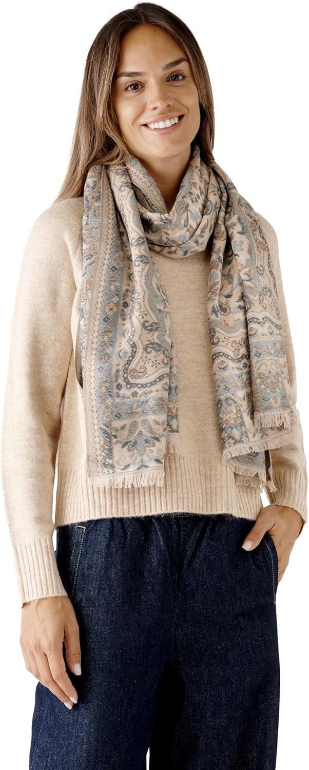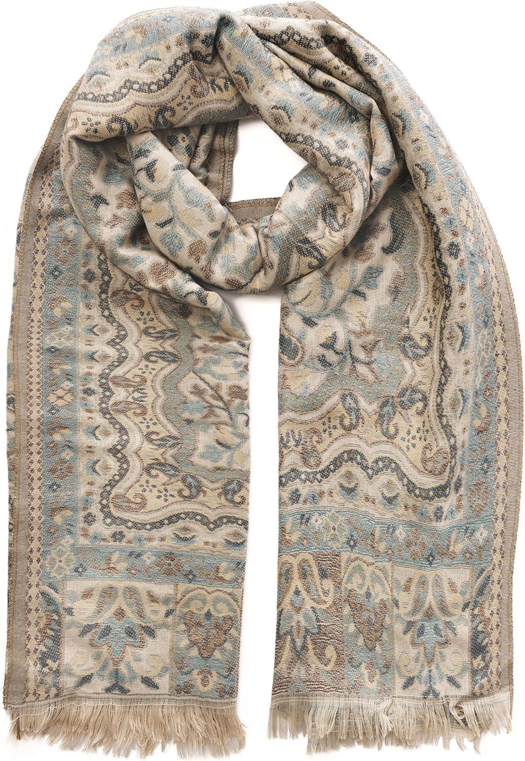 Scarf for Women Spanish Design Elegant Long Shawl Scarves for Summer Fall(Clares Collection – Paisley Pattern Beige)