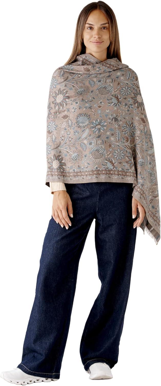 Scarf for Women Spanish Design Elegant Long Shawl Scarves for Summer Fall(Clares Collection – Floral Design Beige)