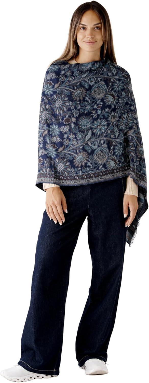 Scarf for Women Spanish Design Elegant Long Shawl Scarves for Summer Fall(Clares Collection – Floral Design Navy)