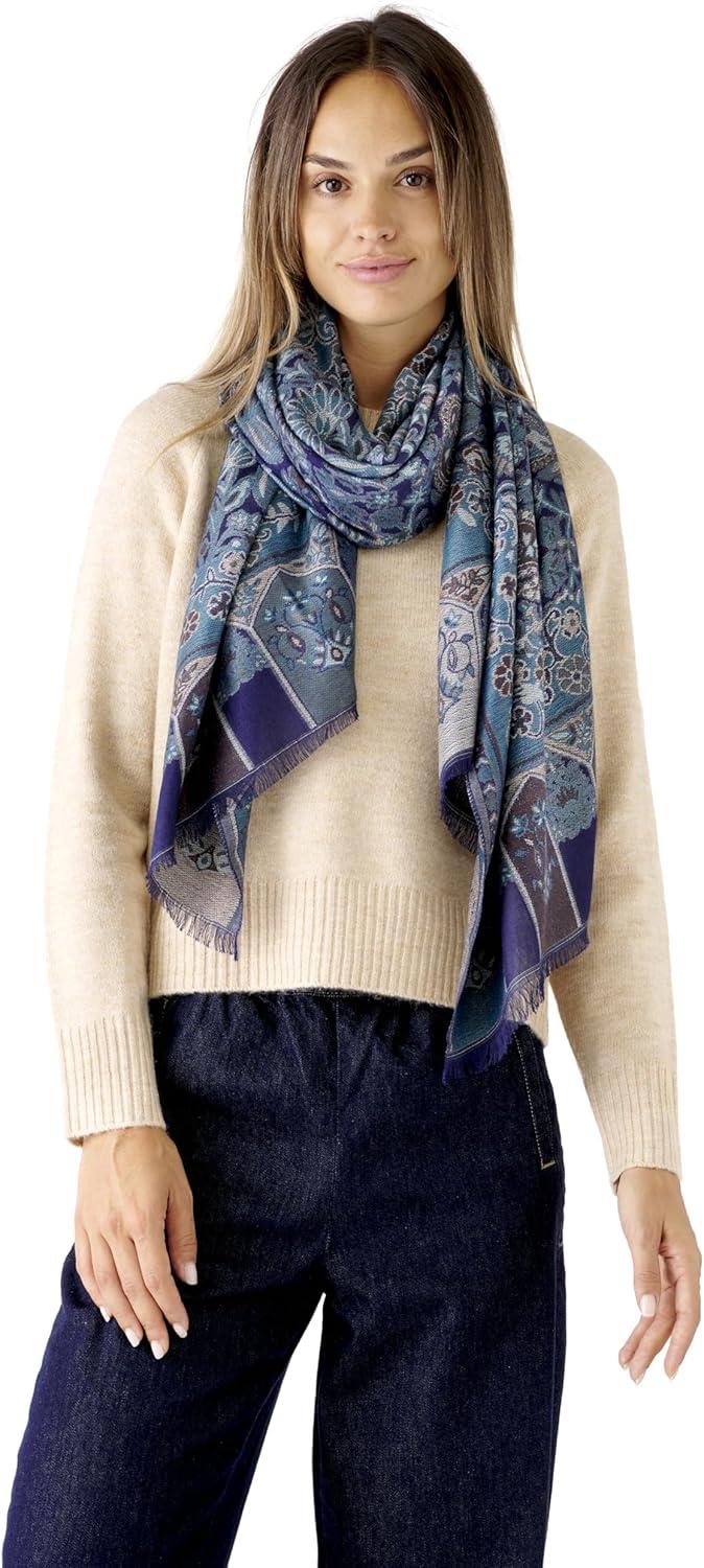 MELIFLUOS DESIGNED IN SPAIN Women’s Fashion Scarves Long Shawl Cardigan Wrap Large Warm Long Scarves(Palma Design – Blue Paisley)