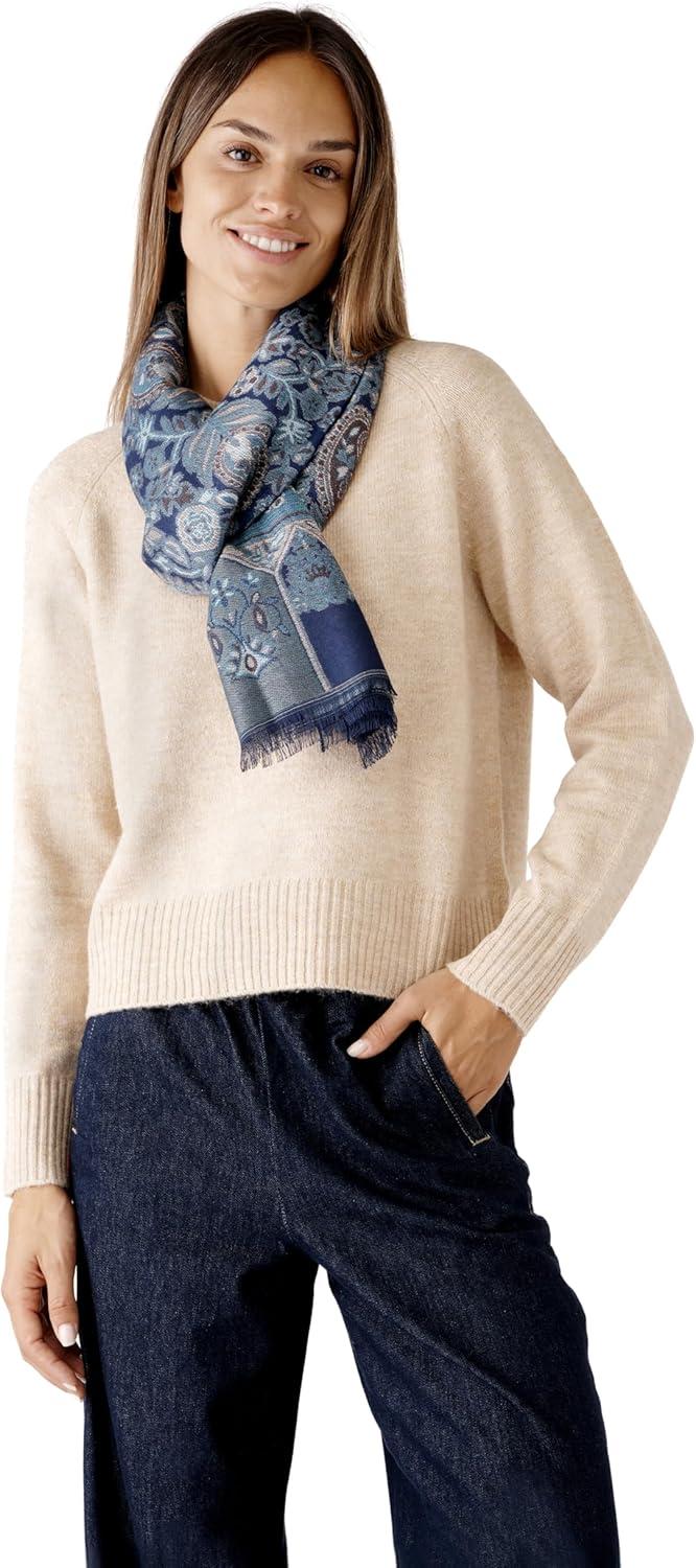 Scarf for Women Spanish Design Elegant Long Shawl Scarves for Summer Fall(Baza Collection – Navy Beige Paisley)