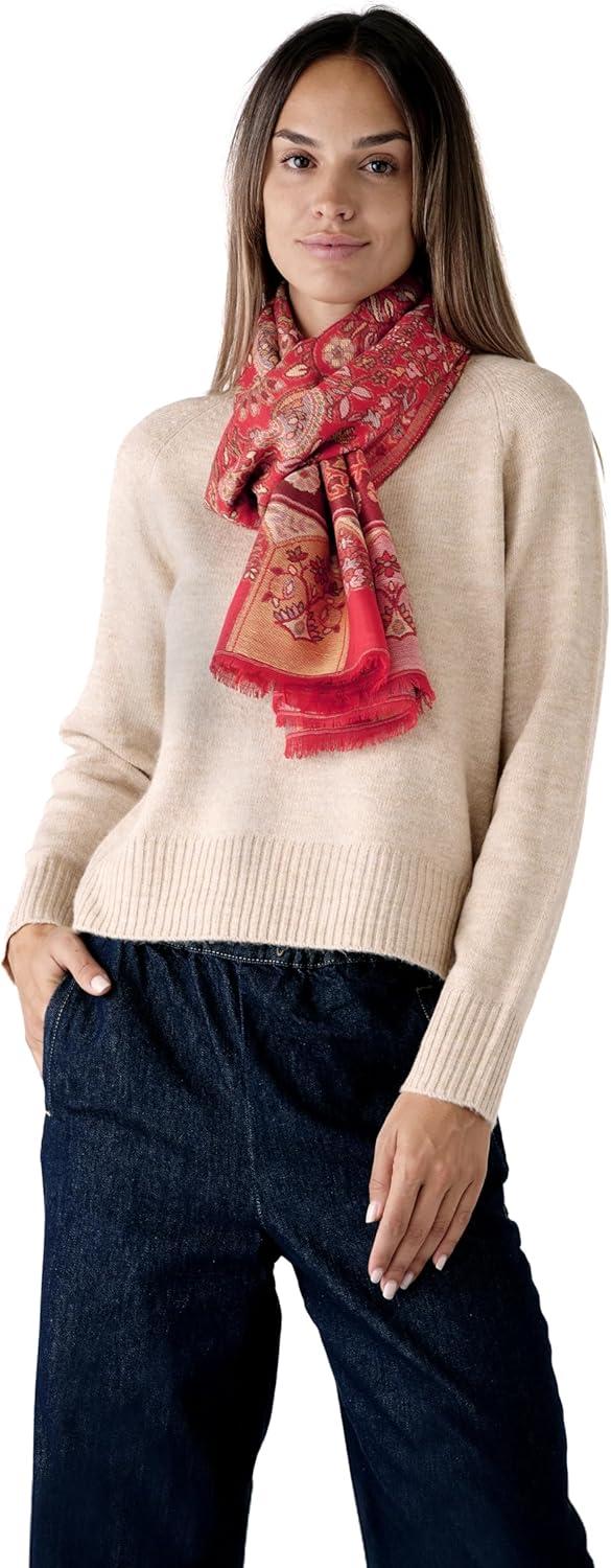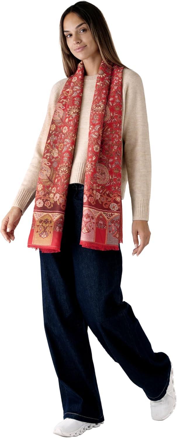 Scarf for Women Spanish Design Elegant Long Shawl Scarves for Summer Fall(Clares Collection – Paisley Design Red)