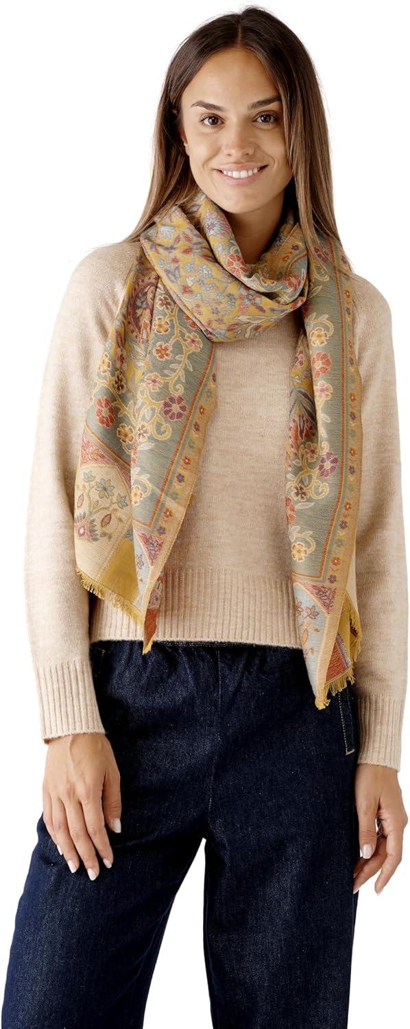 Scarf for Women Spanish Design Elegant Long Shawl Scarves for Summer Fall(Clares Collection – Floral Pattern Yellow)
