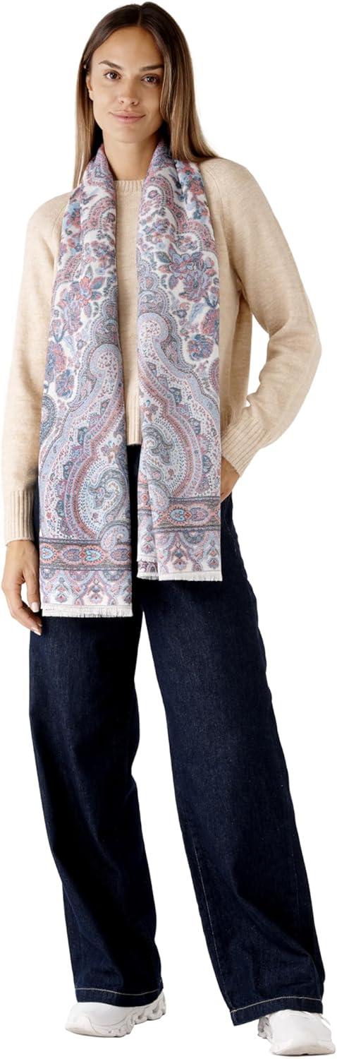 Scarf for Women Spanish Design Elegant Long Shawl Scarves for Summer Fall(Clares Collection – Paisley Design White)