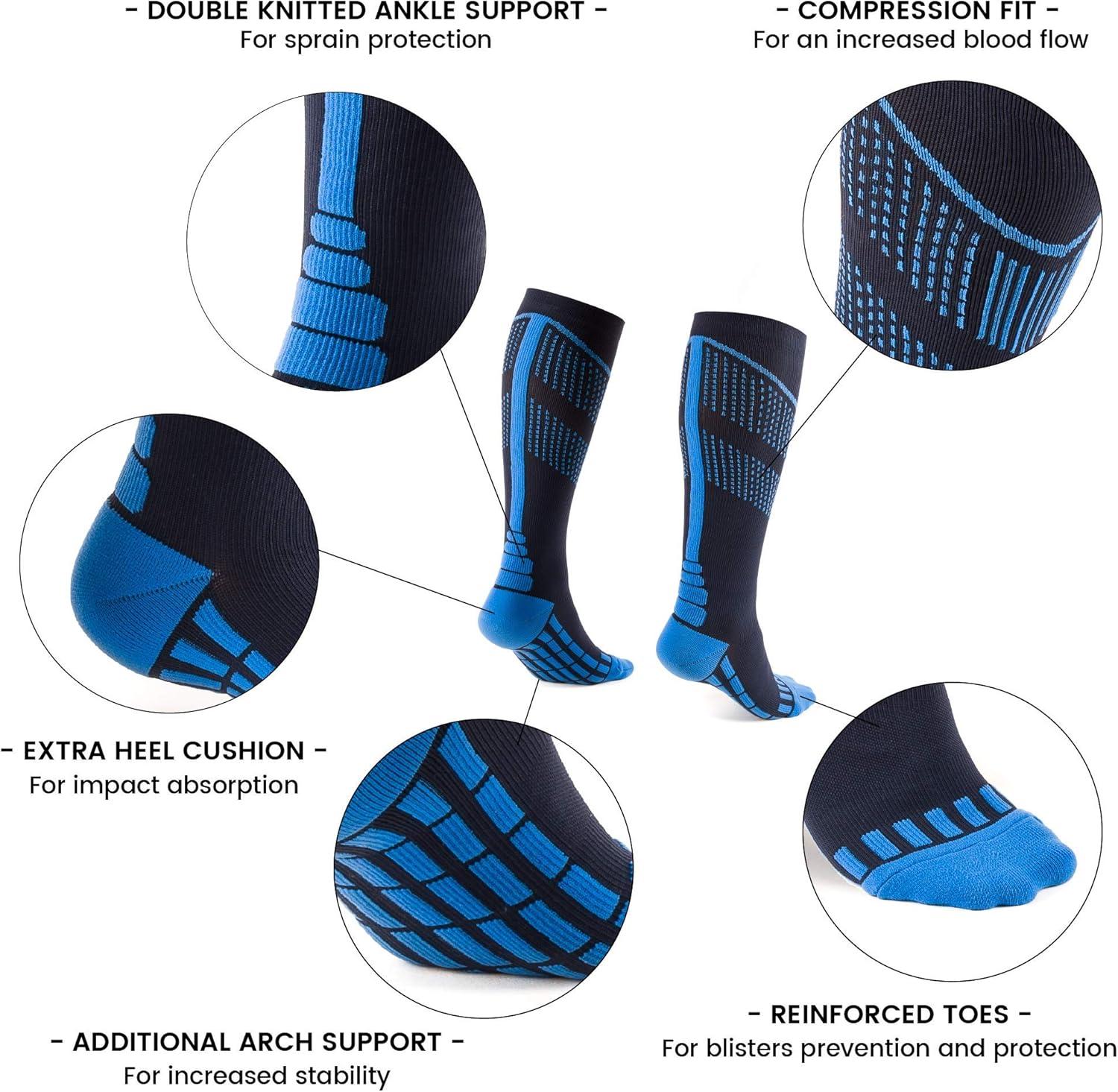 Athletic Compression Socks Designed for Sport Basketball Running Workout Gym(Double Blue)