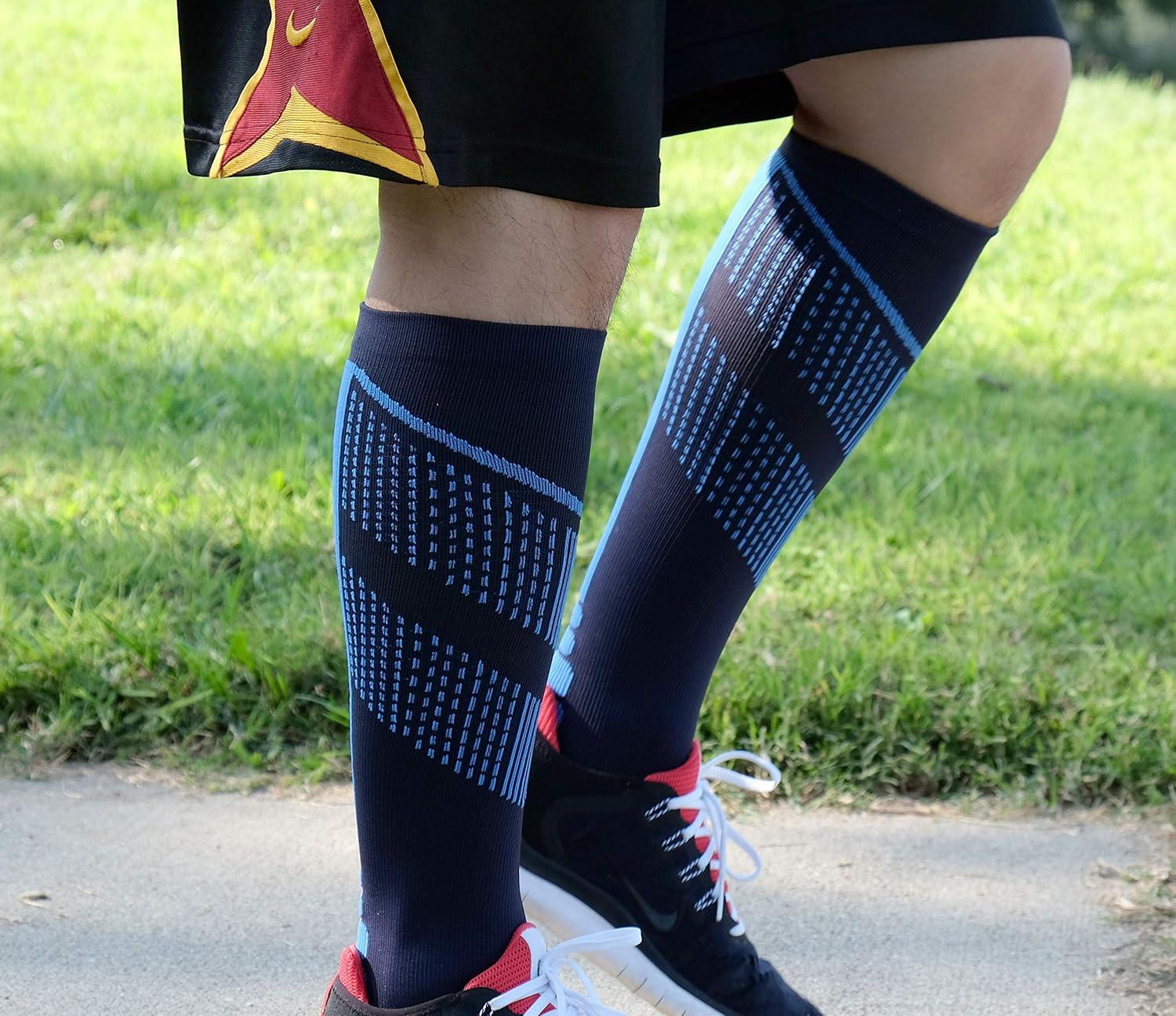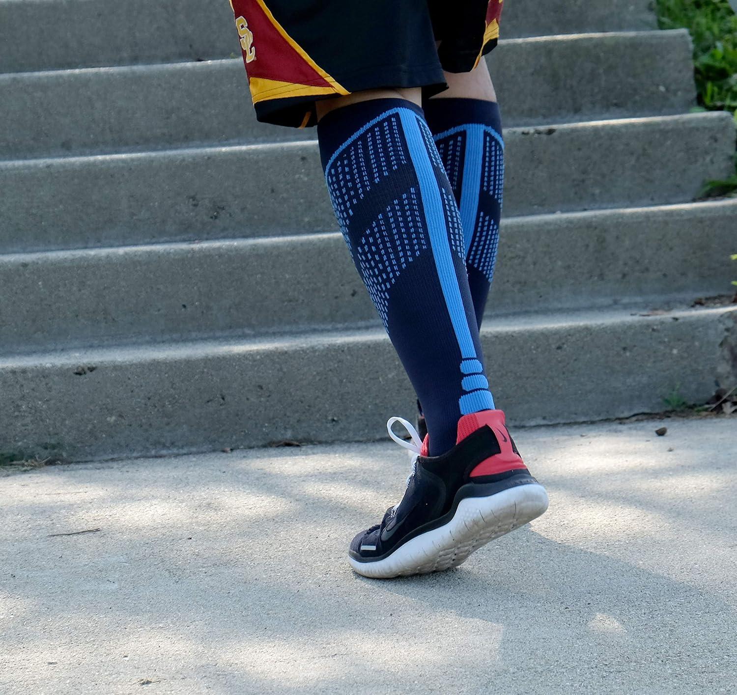 Athletic Compression Socks Designed for Sport Basketball Running Workout Gym(Double Blue)