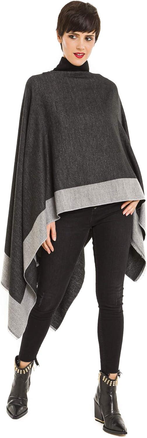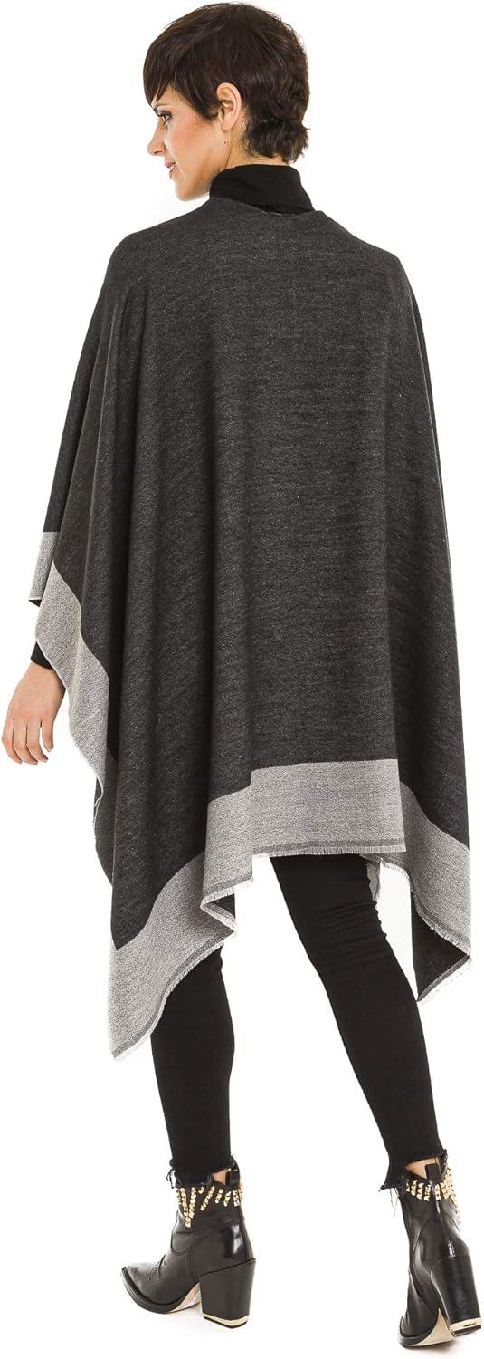 Cardigan Poncho Cape: Women Elegant Cardigan Shawl Wrap Sweater Coat for Fall Winter(Border Design -Black and Gray)