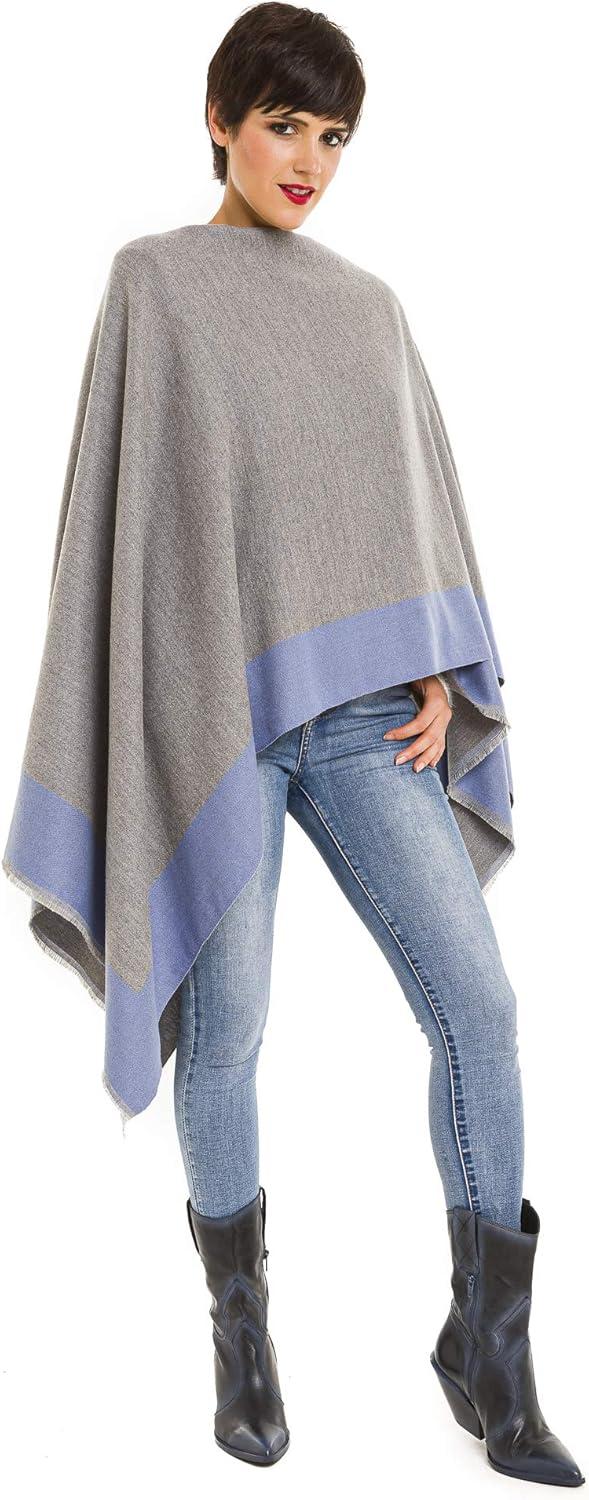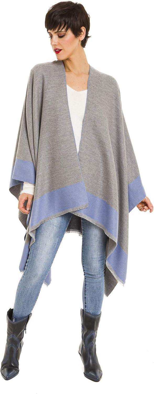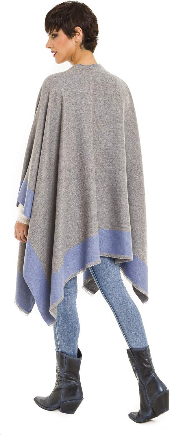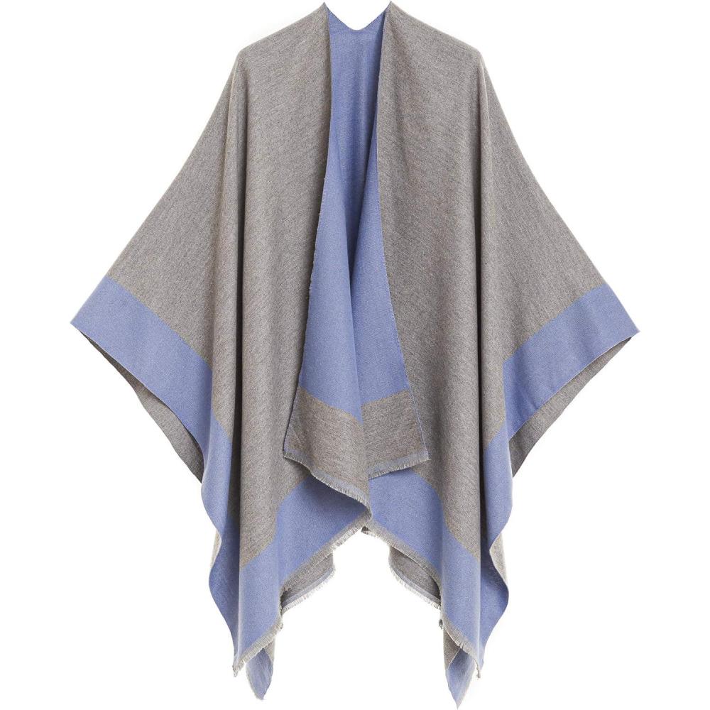 Cardigan Poncho Cape: Women Elegant Cardigan Shawl Wrap Sweater Coat for Fall Winter(Border Design -Blue and Gray)
