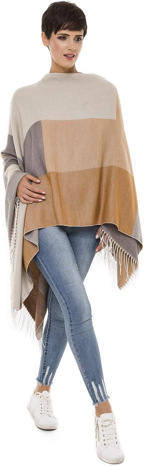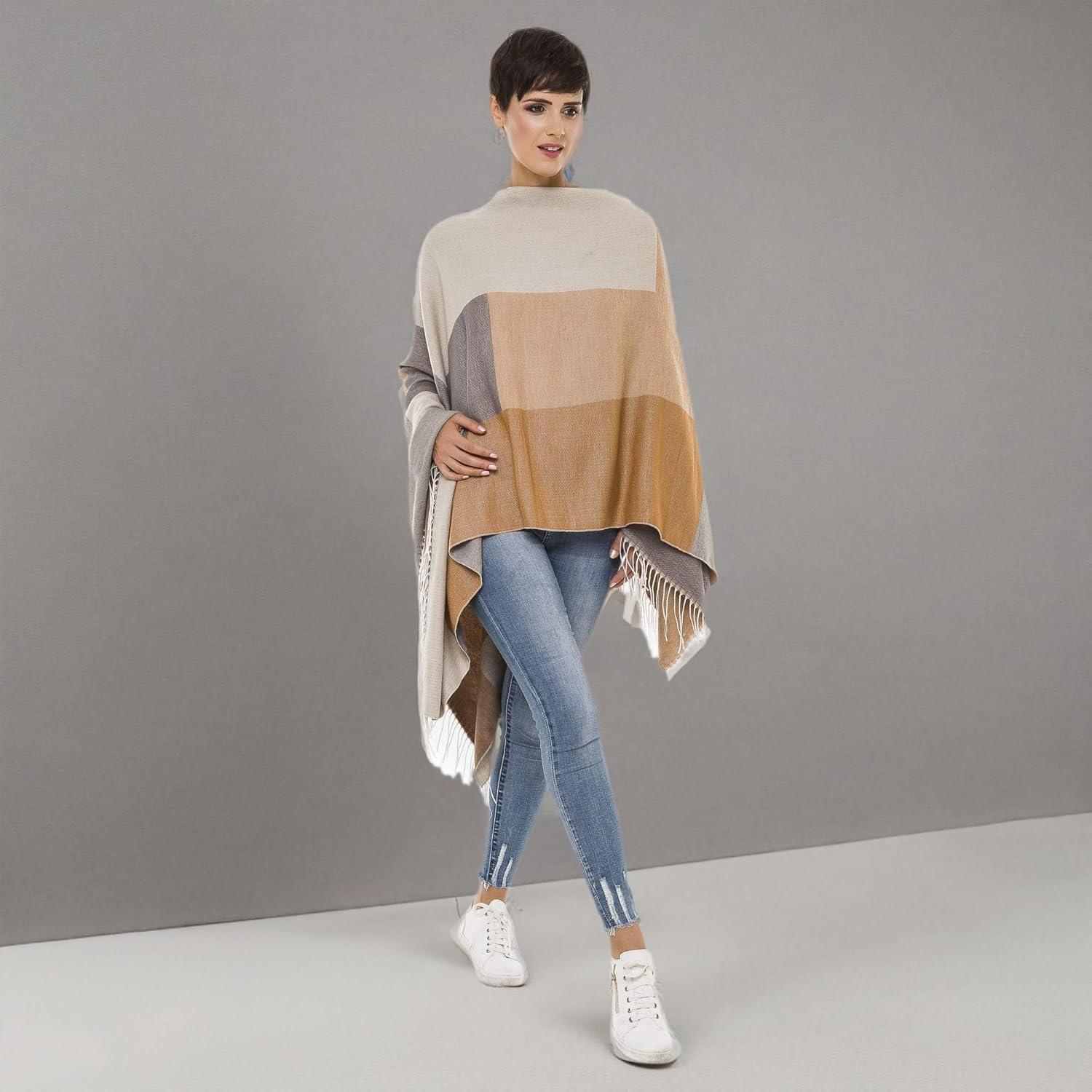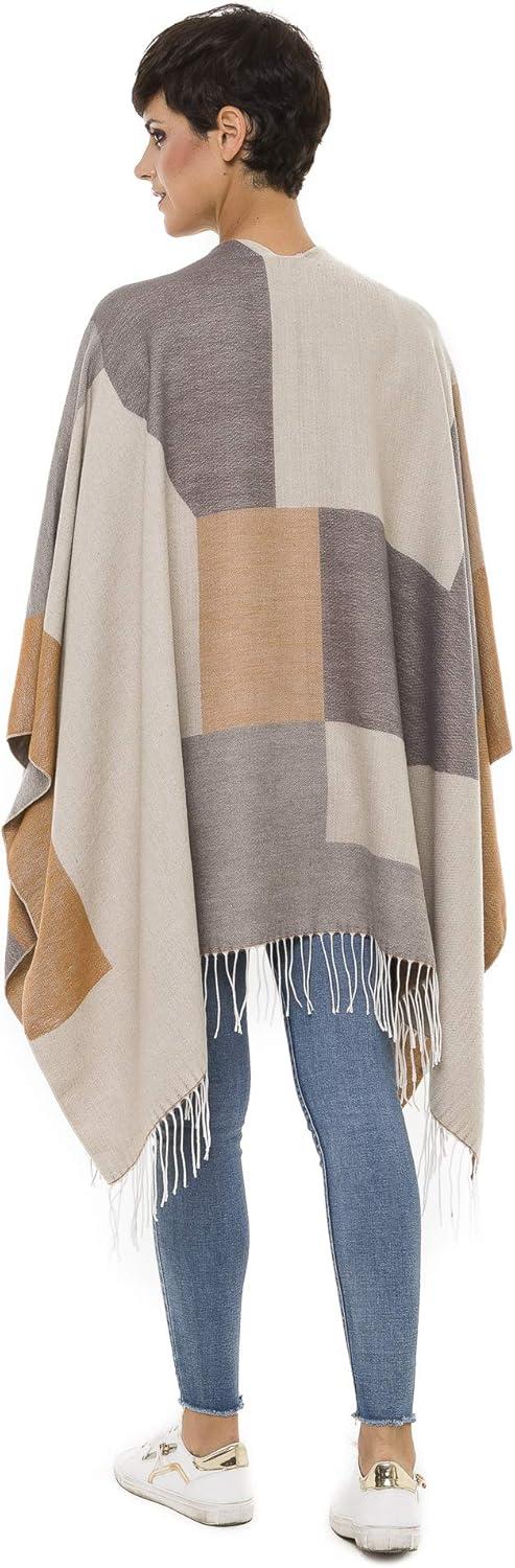 Cardigan Poncho Cape: Women Elegant Cardigan Shawl Wrap Sweater Coat for Fall Winter(Geometric Design – Gray and Yellow)