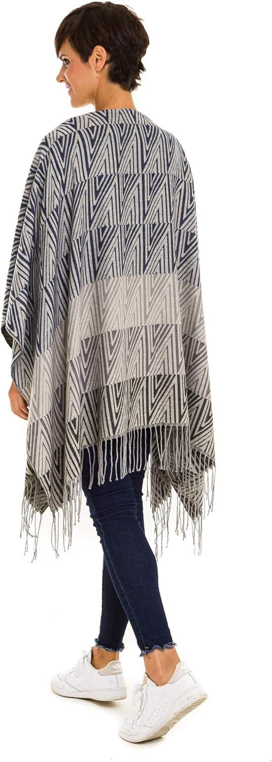 Cardigan Poncho Cape: Women Elegant Cardigan Shawl Wrap Sweater Coat for Fall Winter(Geometric Design – Gray Diamond)