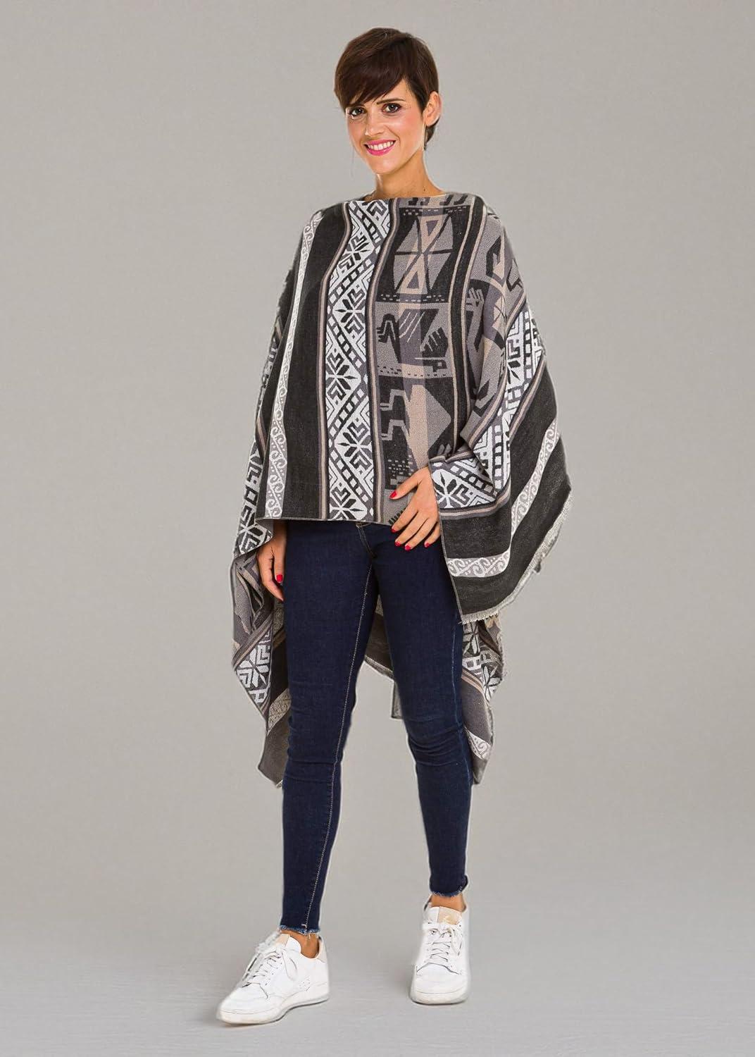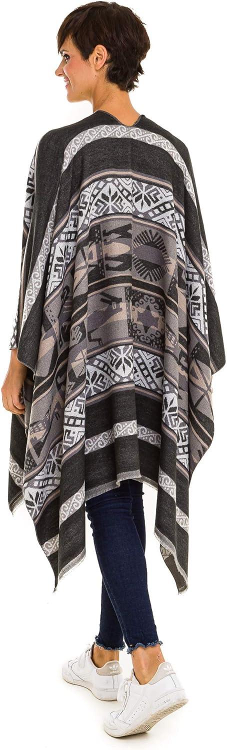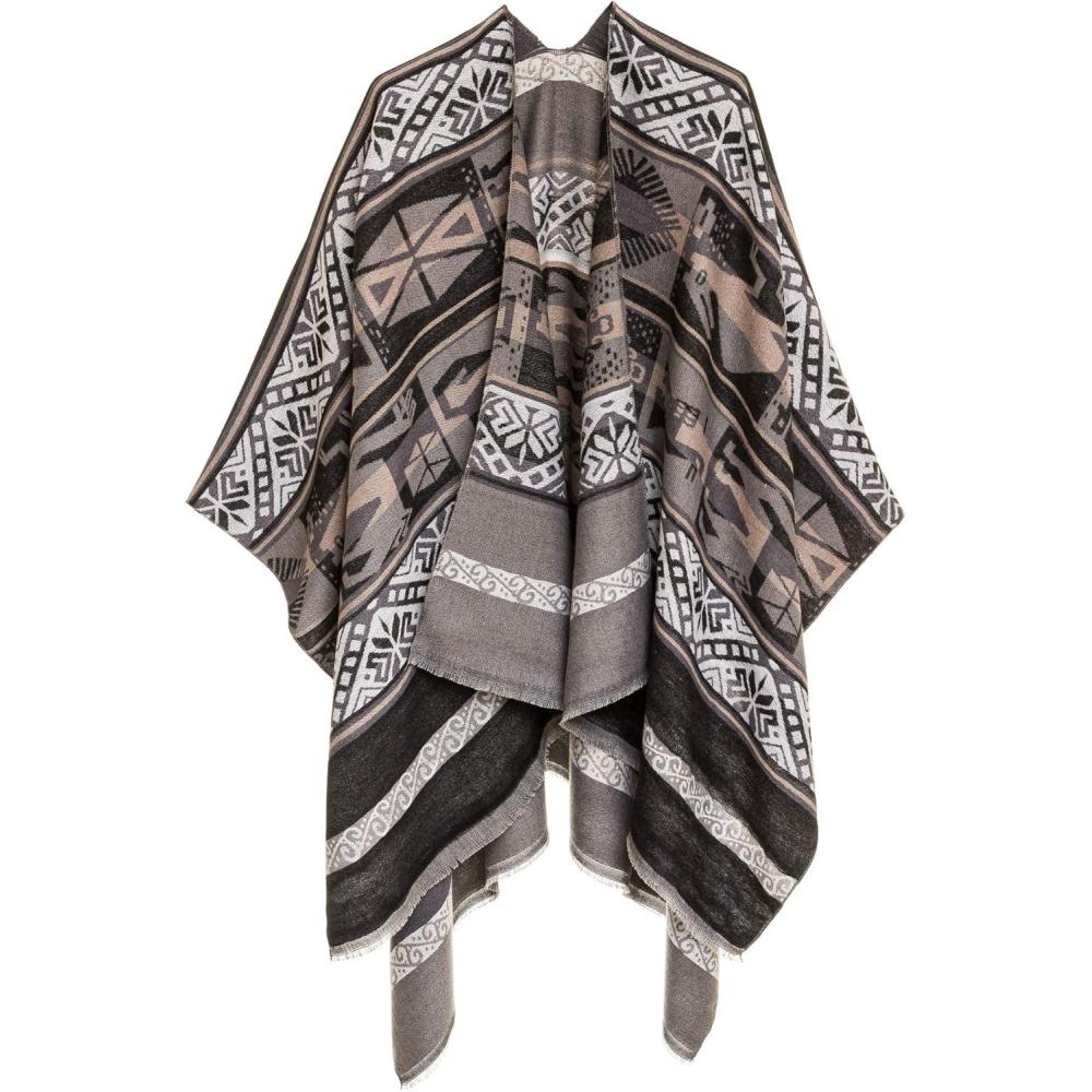 Cardigan Poncho Cape: Women Elegant Cardigan Shawl Wrap Sweater Coat for Fall Winter(Geometric Design – Gray Pattern)