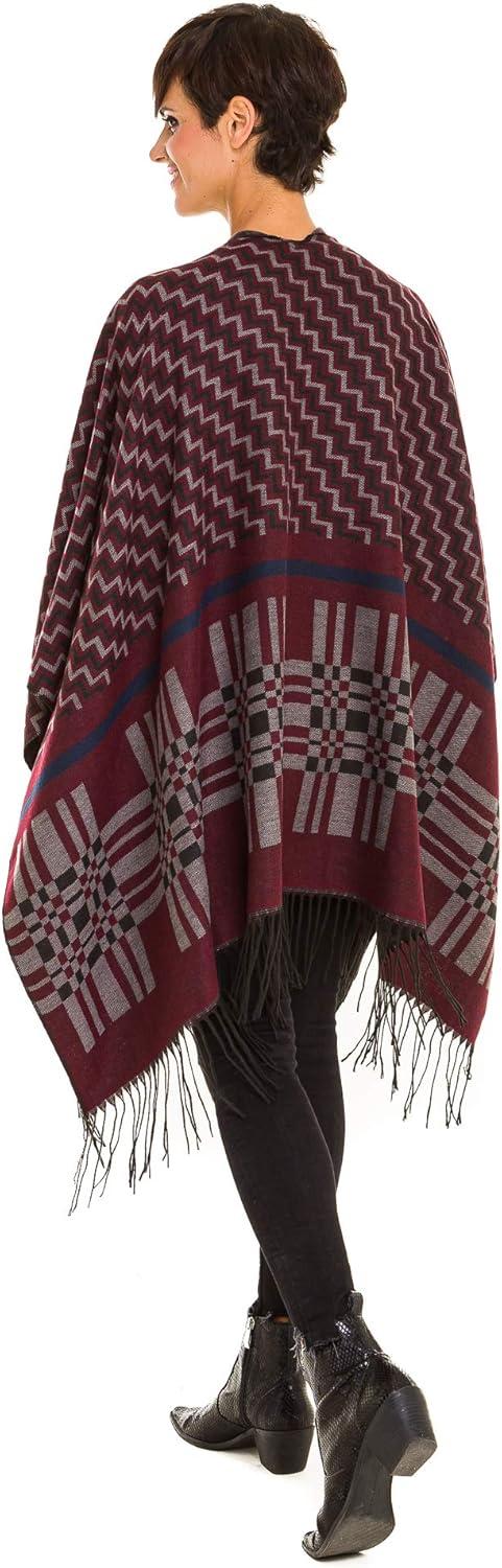 Cardigan Poncho Cape: Women Elegant Cardigan Shawl Wrap Sweater Coat for Fall Winter(Geometric Design – Mulberry Zig Zag)